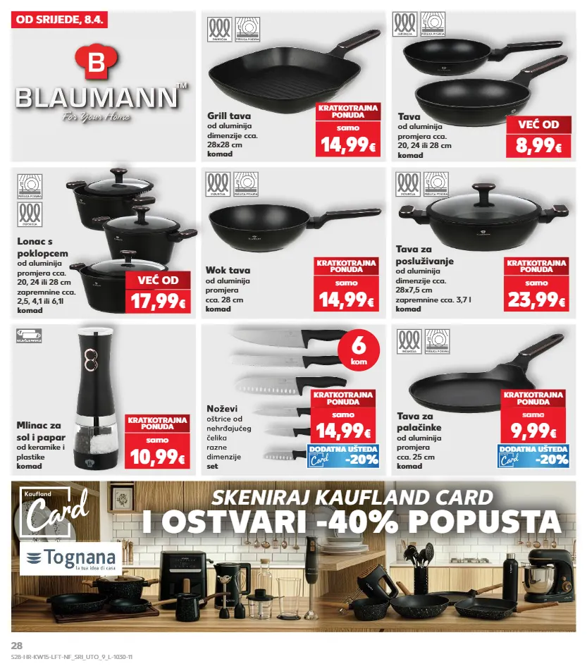 od srijede, 8.4. mlinac za sol i papar od keramike i plastike komad grill tava od aluminija dimenzije cca. 28x28 cm komad kratkotrajna ponuda kratkotrajna ponuda wok tava od aluminija promjera cca. 28 cm komad kratkotrajna ponuda tava za posluživanje od aluminija dimenzije cca. 28x7,5 cm zapremnine cca. 3,7 l komad kratkotrajna ponuda samo 10,99 € samo 14,99 € samo 14,99 € samo 23,99 € lonac s poklopcem od aluminija promjera cca. 20, 24 ili 28 cm zapremnine cca. 2,5, 4,1 ili 6,1l komad već od 17,99 € već od 8,99 € tava za palačinke od aluminija promjera cca. 25 cm komad kratkotrajna ponuda samo 9,99 € o 9,99 samo 9,99 samo 9,99 samo 9,99 sam samo € o € o -20% dodatna ušteda noževi oštrice od nehrđajućeg čelika razne dimenzije set noževi oštrice od nehrđajućeg čelika razne dimenzije 6 kom kratkotrajna ponuda samo 14,99 € -20% dodatna ušteda tava od aluminija promjera cca. 20, 24 ili 28 cm komad skeniraj kaufland card i ostvari -40% popusta s28-hr-kw15-lft-nf_sri_uto_9_l-1030-11 28