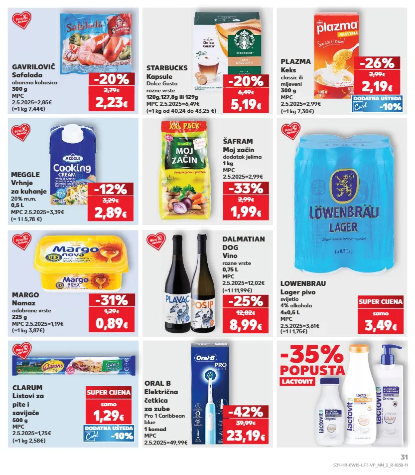 1,29 € kratkotrajna ponuda kratkotrajna ponuda kratkotrajna ponuda kratkotrajna ponuda kratkotrajna ponuda samo samo kratkotrajna ponuda samo kratkotrajna ponuda super cijena samo samo samo kratkotrajna ponuda kratkotrajna ponuda samo kratkotrajna ponuda samo starbucks kapsule dolce gusto razne vrste 120g,127,8g ili 129g mpc 2.5.2025=6,49€ (=1 kg od 40,24 do 43,25 €) -20% šafram moj začin dodatak jelima 1 kg mpc 2.5.2025=2,99€ -33% dalmatian dog vino razne vrste 0,75 l mpc 2.5.2025=12,02€ (=1 l 11,99€) oral b električna četkica za zube pro 1 caribbean blue 1 komad mpc 2.5.2025=49,99€ -25% (=1 kg 3,87€) margo namaz odabrane vrste 225 g mpc 2.5.2025=1,19€ -31% (=1 kg 7,44€) gavrilović safalada obarena kobasica 300 g mpc 2.5.2025=2,85€ -20% 5,19 € 6,49 € 1,99 € 2,99 € lowenbrau lager pivo svijetlo 4% alkohola 4x0,5 l mpc 2.5.2025=3,61€ (=1 l 1,75€) super cijena samo 3,49 € 8,99 € 12,02 € meggle vrhnje za kuhanje 20% m.m. 0,5 l mpc 2.5.2025=3,39€ (= 1 l 5,78 €) -12% 2,89 € 3,29 € 0,89 € 1,29 € 2,23 € 2,79 € (=1 kg 2,58€) clarum listovi za pite i savijače 500 g mpc 2.5.2025=1,75€ samo 1,29 € super cijena -10% dodatna ušteda (=1 kg 7,30€) plazma keks classic ili mljeveni 300 g mpc 2.5.2025=2,99€ 2,19 € -26% 2,99 € -10% dodatna ušteda -42% 23,19 € 39,99 € lactovit -35% popusta s31-hr-kw15-lft-vp_nn_2_r-1030-11 31