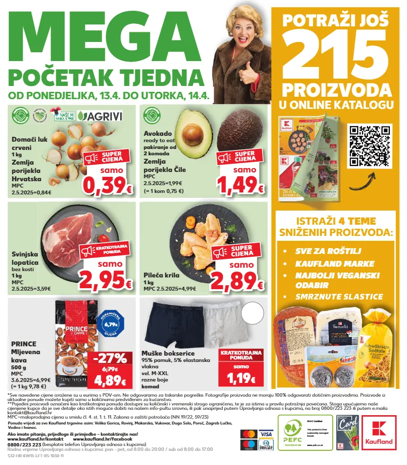 kratkotrajna ponuda samo pefc/23-31-86 pefc certified this product is from sustainably managed forests www.pefc.co.uk *sve navedene cijene izražene su u eurima s pdv-om. ne odgovaramo za tiskarske pogreške. fotografije proizvoda ne moraju 100% odgovarati dotičnim proizvodima. proizvode iz aktualne ponude možete kupiti samo u količinama predviđenim za kućanstvo. **pojedini proizvodi označeni kao kratkotrajna ponuda dostupni su količinski i vremenski strogo ograničeno, te je za istima u pravilu potražnja povećana. stoga upućujemo naše cijenjene kupce da je sve detalje oko istih moguće dobiti na našem info-pultu izravno, ili pak unaprijed putem upravljanja odnosa s kupcima, na broj 0800/223 223 ili putem e.maila kontakt@kaufland.hr mpc=maloprodajna cijena u smislu čl. 4. st. 1. t. 11. zakona o zaštiti potrošača (nn 19/22, 59/23) 0800 / 223 223 (besplatni telefon upravljanja odnosa s kupcima) radno vrijeme upravljanja odnosa s kupcima: pon - pet, od 8:00 do 20:00 / sub od 8:00 do 17:00 ako imate pitanja, prijedloge ili primjedbe – kontaktirajte nas! www.kaufland.hr/kontakt www.kaufland.hr/facebook ponuda vrijedi za sve kaufl and trgovine osim: velika gorica, rovinj, makarska, vukovar, dugo selo, poreč, zagreb lučko, vodice i ivanec. od ponedjeljka, 13.4. do utorka, 14.4. 215 u online katalogu potraži još proizvoda istraži 4 teme sniženih proizvoda: • sve za roštilj • smrznute slastice • najbolji veganski odabir • kaufland marke početak tjedna mega domaći luk crveni 1 kg zemlja porijekla hrvatska mpc 2.5.2025=0,84€ avokado ready to eat pakiranje od 2 komada zemlja porijekla čile mpc 2.5.2025=1,99€ (= 1 kom 0,75 €) pileća krila 1 kg mpc 2.5.2025=4,99€ muške bokserice 95% pamuk, 5% elastanska vlakna vel. m-xxl razne boje komad kratkotrajna ponuda samo 1,19 € prince mljevena kava 500 g mpc 3.6.2025=6,99€ 4,89 € -27% 6,79 € svinjska lopatica bez kosti 1 kg mpc 2.5.2025=3,59€ 2,8 9 2,89 € € samo super cijena 0,3 9 0,39 € € samo super cijena 1,4 9 1,49 € € samo super cijena 6,79 € k a u f l a n d k v a l i t e t a o b e ć a n j e s v j e ž i n e k a u f l a n d k v a l i t e t a o b e ć a n j e s v j e ž i n e (= 1 kg 9,78 €) 2,9 5 2,95 € € samo kratkotrajna ponuda smrznute slastice s32-hr-kw15-lft-rs-1030-11