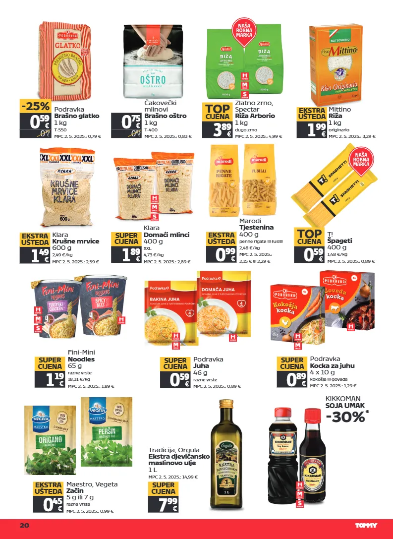 20 0 75 0 83 čakovečki mlinovi brašno oštro 1 kg t-400 mpc 2. 5. 2025.: 0,83 € zlatno zrno, spectar riža arborio 1 kg dugo zrno mpc 2. 5. 2025.: 4,99 € 3 89 top cijena mittino riža 1 kg originario mpc 2. 5. 2025.: 3,29 € 1 99 ekstra ušteda marodi tjestenina 400 g penne rigate ili fusilli 2,48 €/kg mpc 2. 5. 2025.: 2,15 € ili 2,29 € 0 99 ekstra ušteda t! špageti 400 g 1,48 €/kg mpc 2. 5. 2025.: 0,89 € 0 59 top cijena fini-mini noodles 65 g razne vrste 18,31 €/kg mpc 2. 5. 2025.: 1,89 € 1 19 super cijena podravka juha 46 g razne vrste mpc 2. 5. 2025.: 0,89 € 0 59 super cijena podravka kocka za juhu 4 x 10 g kokošja ili goveđa mpc 2. 5. 2025.: 1,29 € 0 89 super cijena maestro, vegeta začin 5 g ili 7 g razne vrste mpc 2. 5. 2025.: 0,99 € 0 45 ekstra ušteda 7 99 super cijena tradicija, orgula ekstra djevičansko maslinovo ulje 1 l mpc 2. 5. 2025.: 14,99 € kikkoman soja umak -30% * podravka brašno glatko 1 kg t-550 mpc 2. 5. 2025.: 0,79 € 0 59 0 79 -25% klara domaći mlinci 400 g xxl 4,73 €/kg mpc 2. 5. 2025.: 2,89 € 1 89 super cijena klara krušne mrvice 600 g 2,49 €/kg mpc 2. 5. 2025.: 2,59 € 1 49 ekstra ušteda