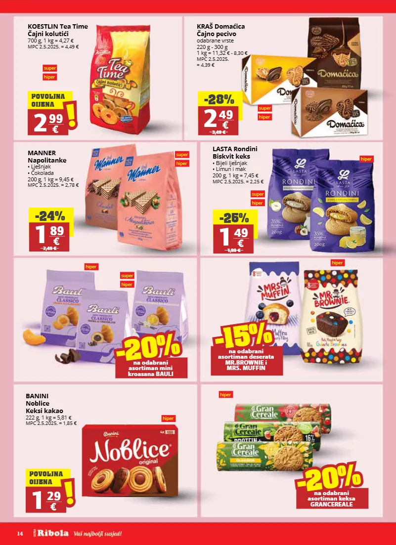 14 super hiper super hiper super hiper super hiper super hiper hiper hiper hiper hiper hiper koestlin tea time čajni kolutići 700 g, 1 kg = 4,27 € mpc 2.5.2025. = 4,49 € manner napolitanke • lješnjak • čokolada 200 g, 1 kg = 9,45 € mpc 2.5.2025. = 2,78 € lasta rondini biskvit keks • bijeli lješnjak • limun i mak 200 g, 1 kg = 7,45 € mpc 2.5.2025. = 2,25 € banini noblice keksi kakao 222 g, 1 kg = 5,81 € mpc 2.5.2025. = 1,85 € kraš domaćica čajno pecivo odabrane vrste 220 g - 300 g 1 kg = 11,32 € - 8,30 € mpc 2.5.2025. = 4,39 € -28% 2 49 3,49 € -24% 1 89 2,49 € -25% 1 49 1,99 € -20% -20% na odabrani asortiman keksa grancereale -20% -20% na odabrani asortiman mini kroasana bauli -15% -15% na odabrani asortiman deserata mr.brownie i mrs. muffin 2 99 ! ! povoljna cijena 1 29 ! ! povoljna cijena