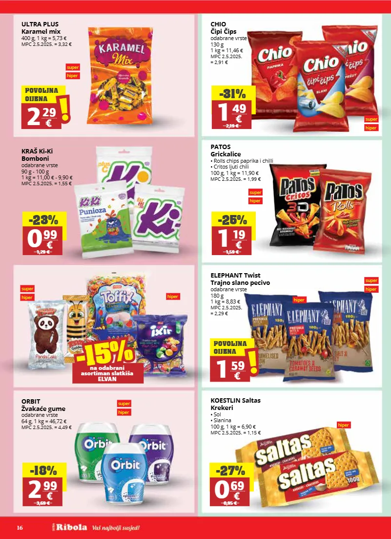 16 super hiper super hiper super hiper super hiper super hiper super hiper super hiper super hiper hiper hiper super hiper super hiper super hiper super hiper hiper ultra plus karamel mix 400 g, 1 kg = 5,73 € mpc 2.5.2025. = 3,32 € orbit žvakaće gume odabrane vrste 64 g, 1 kg = 46,72 € mpc 2.5.2025. = 4,49 € kraš ki-ki bomboni odabrane vrste 90 g - 100 g 1 kg = 11,00 € - 9,90 € mpc 2.5.2025. = 1,55 € -23% 0 99 1,29 € -18% 2 99 3,69 € -15% -15% na odabrani asortiman slatkiša elvan chio čipi čips odabrane vrste 130 g 1 kg = 11,46 € mpc 2.5.2025. = 2,91 € patos grickalice • rolls chips paprika i chilli • critos ljuti chili 100 g, 1 kg = 11,90 € mpc 2.5.2025. = 1,99 € elephant twist trajno slano pecivo odabrane vrste 180 g 1 kg = 8,83 € mpc 2.5.2025. = 2,29 € koestlin saltas krekeri • sol • slanina 100 g, 1 kg = 6,90 € mpc 2.5.2025. = 1,15 € -31% 1 49 2,19 € -25% 1 19 1,59 € -27% 0 69 0,95 € 2 29 ! ! povoljna cijena 1 59 ! ! povoljna cijena