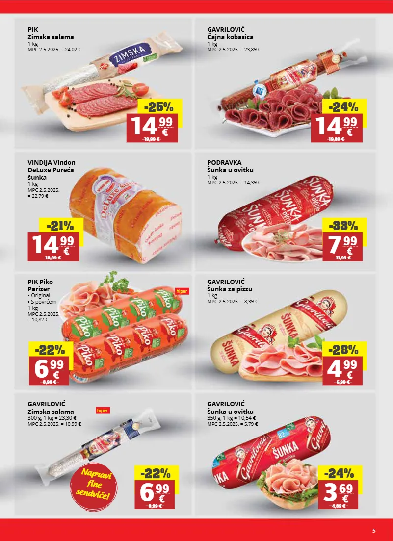 5 napravi fine sendviče! pik zimska salama 1 kg mpc 2.5.2025. = 24,02 € gavrilović čajna kobasica 1 kg mpc 2.5.2025. = 23,89 € vindija vindon deluxe pureća šunka 1 kg mpc 2.5.2025. = 22,79 € podravka šunka u ovitku 1 kg mpc 2.5.2025. = 14,39 € gavrilović šunka za pizzu 1 kg mpc 2.5.2025. = 8,39 € gavrilović zimska salama 300 g, 1 kg = 23,30 € mpc 2.5.2025. = 10,99 € gavrilović šunka u ovitku 350 g, 1 kg = 10,54 € mpc 2.5.2025. = 5,79 € pik piko parizer • original • s povrćem 1 kg mpc 2.5.2025. = 10,82 € -33% 7 99 11,99 € -28% 4 99 6,99 € -22% 6 99 8,99 € -24% 3 69 4,89 € -22% 6 99 8,99 € -25% 14 99 19,99 € -24% 14 99 19,89 € -21% 14 99 18,99 € hiper hiper