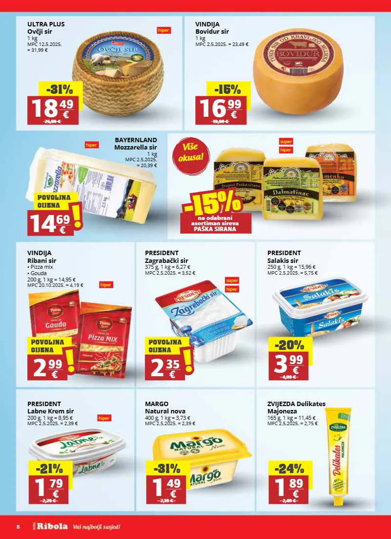 8 više okusa! super hiper super hiper hiper hiper hiper hiper vindija ribani sir • pizza mix • gouda 200 g, 1 kg = 14,95 € mpc 20.10.2025. = 4,19 € president zagrabački sir 375 g, 1 kg = 6,27 € mpc 2.5.2025. = 3,52 € president salakis sir 250 g, 1 kg = 15,96 € mpc 2.5.2025. = 5,75 € president labne krem sir 200 g, 1 kg = 8,95 € mpc 2.5.2025. = 2,39 € margo natural nova 400 g, 1 kg = 3,73 € mpc 2.5.2025. = 2,39 € zvijezda delikates majoneza 165 g, 1 kg = 11,45 € mpc 2.5.2025. = 2,75 € ultra plus ovčji sir 1 kg mpc 12.5.2025. = 31,99 € vindija bovidur sir 1 kg mpc 2.5.2025. = 23,49 € bayernland mozzarella sir 1 kg mpc 2.5.2025. = 20,39 € -20% 3 99 4,99 € -21% 1 79 2,29 € -31% 1 49 2,19 € -24% 1 89 2,49 € 2 99 ! ! povoljna cijena 2 35 ! ! povoljna cijena -31% 18 49 26,99 € -15% 16 99 19,99 € 14 69 ! ! povoljna cijena -15% -15% na odabrani asortiman sireva paška sirana