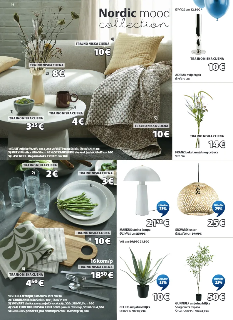 14 1) ejlif zdjela ø12xv7 cm 3,25€ 2) visti vaza staklo. ø11xv22 cm 8€ 3) melvin šalica ø10xv9 cm 4€ 4) strandbede ukrasni jastuk 45x45 cm 10€ 5) lavendel štepana deka 130x170 cm 10€ 1) 3 3 25 25 € € trajno niska cijena 2) 8 8 € € trajno niska cijena 3) 4 4 € € trajno niska cijena 4) 10 10 € € trajno niska cijena 5) 10 10 € € trajno niska cijena 1) steffen tanjur kamenina. ø21 cm 3€ 2) ferdinand čaša staklo. 40 cl, ø7xv14 cm 3) sigvart daska za rezanje drvo akacije. š20xd38xv1,5 cm 10€ 4) svaleurt kuhinjska krpa 100% pamuk. 2 kom/p, 50x70 cm 4,50€ 5) gregers pribor za jelo nehrđajući čelik. 16 kom/p 18,50€ 1) 3 3 € € trajno niska cijena 2) 2 2 € € trajno niska cijena 3) 10 10 € € trajno niska cijena 4) 4 4 50 50 € € trajno niska cijena 5) 18 18 50 50 € € 16 kom/p trajno niska cijena markus stolna lampa ø27xv35 cm 27,99€ 21 21 50 50 € € uštedite 23% sigvard luster ø35xv26 cm 34,99€ 25 25 € € uštedite 29% celius umjetna biljka ø30xv39 cm 14,99€ v65 cm 29,99€ 21,50€ 10 10 € € uštedite 33% gunnulf umjetna biljka s teglom za cvijeće. š65xd56xv150 cm 64,99€ 50 50 € € uštedite 23% franz buket umjetnog cvijeća v70 cm 14 14 € € trajno niska cijena adrian svijećnjak ø7xv19 cm ø7xv22 cm 12,50€ 10 10 € € trajno niska cijena 4912634 4912742 4912714 6893500 4545200 4912279 4912338 4912797 2411400 4912536 4912186 4912492 4912757 4912439 4912760 4912746