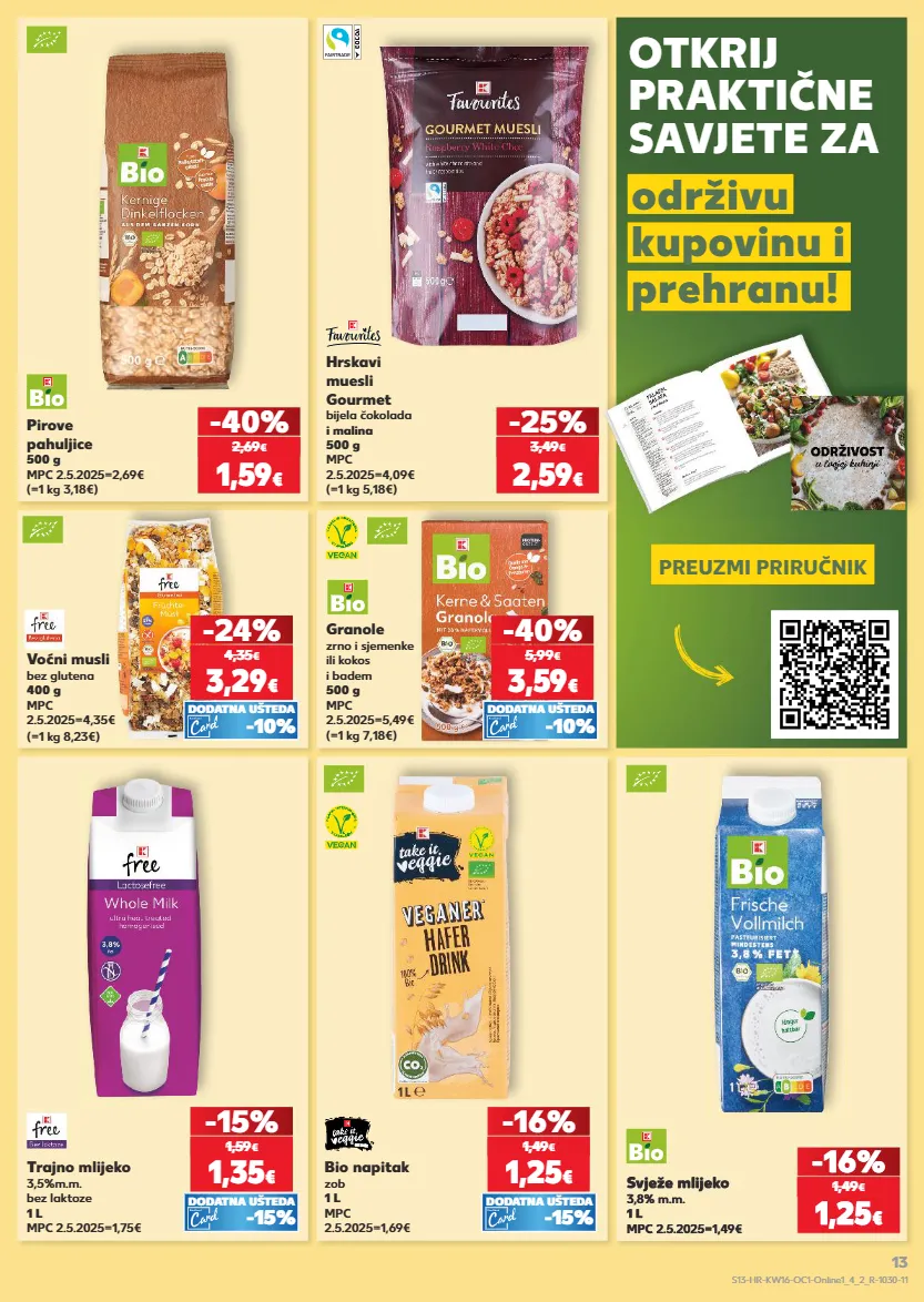 kratkotrajna ponuda samo kratkotrajna ponuda kratkotrajna ponuda samo kratkotrajna ponuda samo samo kratkotrajna ponuda samo kratkotrajna ponuda samo kratkotrajna ponuda samo otkrij praktične savjete za održivu kupovinu i prehranu! preuzmi priručnik bio napitak zob 1 l mpc 2.5.2025=1,69€ 1,25 € -16% 1,49 € -15% dodatna ušteda (=1 kg 5,18€) hrskavi muesli gourmet bijela čokolada i malina 500 g mpc 2.5.2025=4,09€ (=1 kg 3,18€) pirove pahuljice 500 g mpc 2.5.2025=2,69€ -40% svježe mlijeko 3,8% m.m. 1 l mpc 2.5.2025=1,49€ -16% 1,25 € 1,49 € -25% 2,59 € 3,49 € 1,59 € 2,69 € (=1 kg 7,18€) granole zrno i sjemenke ili kokos i badem 500 g mpc 2.5.2025=5,49€ 3,59 € -40% 5,99 € -10% dodatna ušteda (=1 kg 8,23€) voćni musli bez glutena 400 g mpc 2.5.2025=4,35€ 3,29 € -24% 4,35 € -10% dodatna ušteda trajno mlijeko 3,5%m.m. bez laktoze 1 l mpc 2.5.2025=1,75€ 1,35 € -15% 1,59 € -15% dodatna ušteda s13-hr-kw16-oc1-online1_4_2_r-1030-11 13