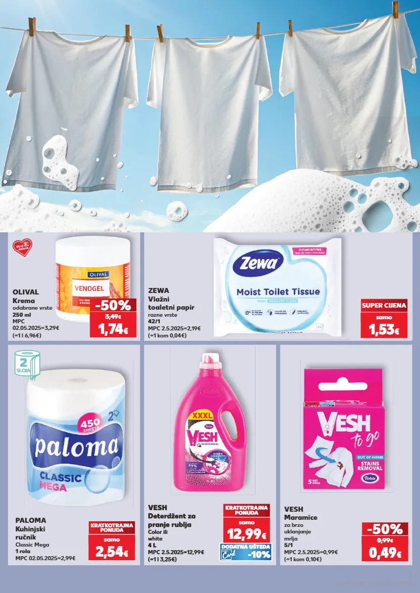 12,99 € kratkotrajna ponuda kratkotrajna ponuda kratkotrajna ponuda samo samo paloma kuhinjski ručnik classic mega 1 rola mpc 02.05.2025=2,99€ kratkotrajna ponuda olival krema odabrane vrste 250 ml mpc 02.05.2025=3,29€ (=1 l 6,96€) -50% zewa vlažni toaletni papir razne vrste 42/1 mpc 2.5.2025=2,19€ (=1 kom 0,04€) vesh maramice za brzo uklanjanje mrlja 5/1 mpc 2.5.2025=0,99€ (=1 kom 0,10€) super cijena -50% samo 2,54 € 1,74 € 3,49 € samo 1,53 € 0,49 € 0,99 € (=1 l 3,25€) vesh deterdžent za pranje rublja color ili white 4 l mpc 2.5.2025=12,99€ kratkotrajna ponuda samo 12,99 € -10% dodatna ušteda 2 sloja s7-hr-kw16-oc1-online1_2_4_r-1030-11 7