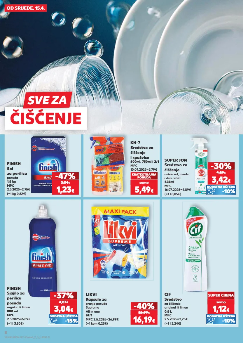 1,09 € kratkotrajna ponuda kratkotrajna ponuda samo samo kratkotrajna ponuda samo kratkotrajna ponuda kratkotrajna ponuda samo od srijede, 15.4. kh-7 sredstvo za čišćenje i spužvice 500ml, 750ml i 2/1 mpc 10.09.2025=5,79€ finish sol za perilicu posuđa 1,5 kg mpc 2.5.2025=2,75€ (=1 kg 0,82€) likvi kapsule za pranje posuđa supreme all in one 67/1 mpc 2.5.2025=26,99€ (=1 kom 0,25€) -40% kratkotrajna ponuda samo 5,49 € -47% 1,23 € 2,34 € 16,19 € 26,99 € (=1 l 3,80€) finish sjajilo za perilicu posuđa regular ili limun 800 ml mpc 2.5.2025=6,09€ (=1 l 2,24€) cif sredstvo za čišćenje original ili limun 0,5 l mpc 2.5.2025=2,25€ 3,04 € -37% 4,87 € samo 1,12 € super cijena -15% dodatna ušteda -10% dodatna ušteda (=1 l 8,05€) super jon sredstvo za čišćenje univerzal, menta i dva refila 425ml mpc 16.07.2025=4,89€ 3,42 € -30% 4,89 € -10% dodatna ušteda čišćenje čišćenje čišćenje sve za s8-hr-kw16-oc1-online1_2_5_l-1030-11 8