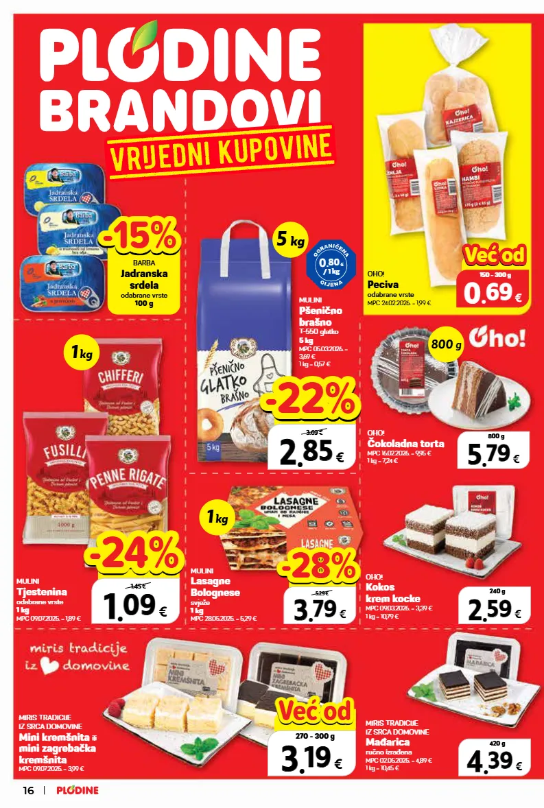 oho! čokoladna torta mpc 16.02.2026. = 9,95 € 1 kg = 7,24 € mulini pšenično brašno t-550 glatko 5 kg mpc 05.03.2026. = 3,69 € 1 kg = 0,57 € mulini tjestenina odabrane vrste 1 kg mpc 09.07.2025. = 1,89 € oho! kokos krem kocke mpc 09.03.2026. = 3,39 € 1 kg = 10,79 € oho! peciva odabrane vrste mpc 24.02.2026. = 1,99 € miris tradicije iz srca domovine mađarica ručno izrađena mpc 02.05.2025. = 4,89 € 1 kg = 10,45 € miris tradicije iz srca domovine mini kremšnita ili mini zagrebačka kremšnita mpc 09.07.2025. = 3,99 € mulini lasagne bolognese svježe 1 kg mpc 28.05.2025. = 5,29 € 0 . 80 € / 1 kg 3 3 . . 19 19 € 270 - 300 g već od već od top cijena! već od hit cijena! 0 0 . . 69 69 € 150 - 300 g već od već od 1 kg 1 kg 5 kg 800 g 16 barba jadranska srdela odabrane vrste 100 g -15% -15% 2 2 . . 59 59 € 240 g 5 5 . . 79 79 € 800 g 4 4 . . 39 39 € 420 g 3 3 . . 79 79 € xxxxx 5.29 € -28% -28% 1 1 . . 09 09 € xxxxx 1.45 € -24% -24% 2 2 . . 85 85 € xxxxx 3.69 € -22% -22%