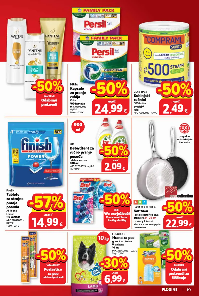 pogodno za indukcijske štednjake persil kapsule za pranje rublja color 100 komada mpc 03.04.2026. = 49,99 € 1 kom = 0,25 € comprami kuhinjski ručnici 500 listića dvoslojni rola mpc 16.08.2025. = 5,19 € finish tablete za strojno pranje posuđa all in one lemon 110 komada mpc 29.09.2025. = 34,99 € 1 kom = 0,14 € jar deterdžent za ručno pranje posuđa odabrane vrste 900 ml mpc 02.05.2025. = 4,69 € 1 l = 2,32 € eurodog hrana za pse govedina, piletina ili janjetina 10 kg mpc 23.06.2025. = 12,59 € 1 kg = 0,70 € casa collection set tava • set se sastoji od tava promjera 24 i 28 cm • materijal: kovani aluminij s neprijanjajućim premazom a b c 10 kg 900 ml 19 24 24 . . 99 99 € 100 komada 49.99 € -50% -50% 2 2 . . 49 49 € rola 4.99 € -50% -50% 22 22 . . 99 99 € 45.99 € -50% -50% vitakraft poslastice za pse odabrani proizvodi -50% -50% bref wc osvježivači premium ili classic 3x 42g -3x 50g -50% -50% 14 14 . . 99 99 € 110 komada 34.99 € -57% -57% pantene odabrani proizvodi -50% -50% swiffer odabrani proizvodi za čiščenje -50% -50% 6 6 . . 99 99 € 10 kg 9.99 € -30% -30% 2 2 . . 09 09 € 900 ml 4.19 € -50% -50%