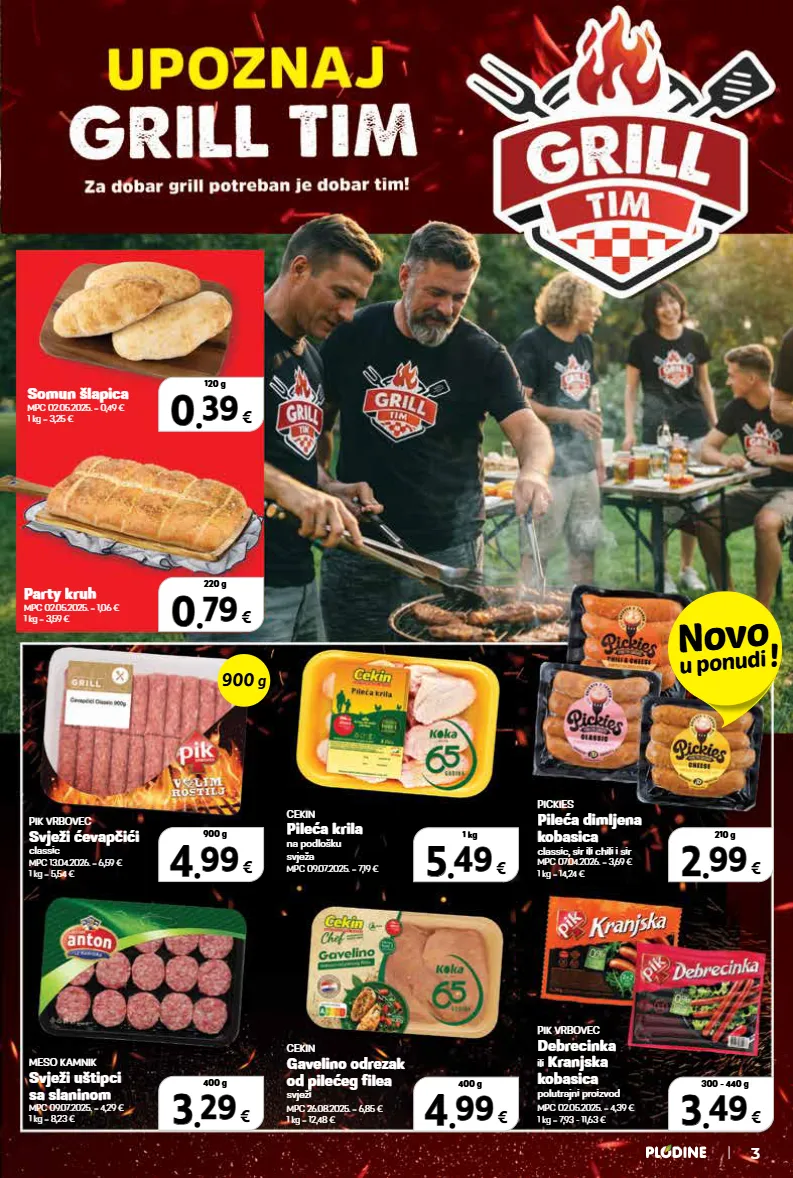 party kruh mpc 02.05.2025. = 1,06 € 1 kg = 3,59 € pik vrbovec debrecinka ili kranjska kobasica polutrajni proizvod mpc 02.05.2025. = 4,39 € 1 kg = 7,93 - 11,63 € pik vrbovec svježi ćevapčići classic mpc 13.04.2026. = 6,59 € 1 kg = 5,54 € meso kamnik svježi uštipci sa slaninom mpc 09.07.2025. = 4,29 € 1 kg = 8,23 € pickies pileća dimljena kobasica classic, sir ili chili i sir mpc 07.04.2026. = 3,69 € 1 kg = 14,24 € cekin gavelino odrezak od pilećeg filea svježi mpc 26.08.2025. = 6,85 € 1 kg = 12,48 € cekin pileća krila na podlošku svježa mpc 09.07.2025. = 7,19 € somun šlapica mpc 02.05.2025. = 0,49 € 1 kg = 3,25 € 3 3 . . 29 29 € 400 g 4 4 . . 99 99 € 900 g 900 g novo u ponudi ! 3 5 5 . . 49 49 € 1 kg 2 2 . . 99 99 € 210 g 4 4 . . 99 99 € 400 g 0 0 . . 39 39 € 120 g 0 0 . . 79 79 € 220 g 3 3 . . 49 49 € 300 - 440 g