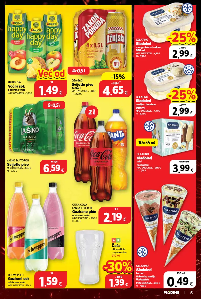 1 1 . . 59 59 € 1 l 6 6 . . 59 59 € 6x 0,5 l gelatino sladoled mini na štapiću mpc 09.07.2025. = 5,09 € 1 l = 7,25 € gelatino sladoled kornet čokolada, vanilija ili pistachio mpc 13.06.2025. = 0,85 € 1 l = 4,08 € coca cola fanta ili sprite gazirano piće odabrane vrste mpc 30.06.2025. = 2,50 € 1 l = 1,10 € gelatino sladoled vanilija - bourbon 900 ml mpc 09.07.2025. = 4,49 € 1 l = 3,32 € gelatino sladoled mango-kokos-badem 900 ml mpc 09.07.2025. = 4,25 € 1 l = 3,32 € ožujsko svijetlo pivo 4x 0,5 l mpc 09.07.2025. = 5,83 € 1 l = 2,33 € schweppes gazirani sok odabrane vrste mpc 09.07.2025. = 1,94 € laško zlatorog svijetlo pivo mpc 09.07.2025. = 8,23 € 1 l = 2,20 € happy day voćni sok odabrane vrste mpc 07.06.2025. = 3,76 € čaša • coca-cola • zapremnine 370 ml a b 3 3 . . 99 99 € 10x 55 ml 2 l 10 x 55 ml 4 x 0,5 l 6 x 0,5 l 2 2 . . 99 99 € xxxxx 3.99 € -25% -25% 5 2 2 . . 99 99 € xxxxx 3.99 € -25% -25% 0 0 . . 49 49 € 120 ml 1 1 . . 39 39 € 1.99 € -30% -30% 2 2 . . 19 19 € 2 l top cijena! već od hit cijena! 1 1 . . 49 49 € 1 l već od već od 4 4 . . 65 65 € 4x 0,5 l -15% -15% 5.49 €
