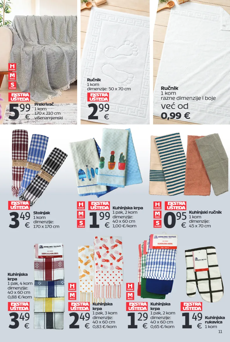 11 5 99 € prekrivač 1 kom 170 x 210 cm višenamjenski ekstra ušteda 2 99 € ručnik 1 kom dimenzije: 50 x 70 cm ekstra ušteda ekstra ušteda 1 99 € kuhinjska krpa 1 pak, 2 kom dimenzije: 40 x 60 cm 1,00 €/kom ekstra ušteda 0 95 € kuhinjski ručnik 1 kom dimenzije: 45 x 70 cm ekstra ušteda 2 49 € kuhinjska krpa 1 pak, 3 kom dimenzije: 40 x 60 cm 0,83 €/kom ekstra ušteda 1 29 € kuhinjska krpa 1 pak, 2 kom dimenzije: 40 x 60 cm 0,65 €/kom već od 0,99 € ručnik 1 kom razne dimenzije i boje ekstra ušteda 1 49 € kuhinjska rukavica 1 kom ekstra ušteda 3 49 € kuhinjska krpa 1 pak, 4 kom dimenzije: 40 x 60 cm 0,88 €/kom 3 49 € stolnjak 1 kom dimenzije: 170 x 170 cm ekstra ušteda