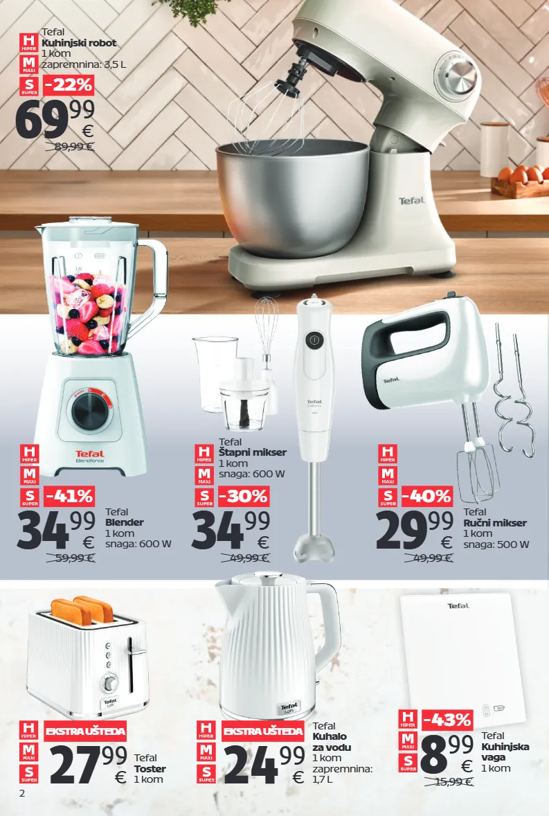 2 - 22 % 69 99 € tefal kuhinjski robot 1 kom zapremnina: 3,5 l 89,99 € - 41 % 34 99 € tefal blender 1 kom snaga: 600 w 59,99 € - 30 % 34 99 € tefal štapni mikser 1 kom snaga: 600 w 49,99 € - 40 % 29 99 € tefal ručni mikser 1 kom snaga: 500 w 49,99 € - 43 % 8 99 € tefal kuhinjska vaga 1 kom 15,99 € tefal kuhalo za vodu 1 kom zapremnina: 1,7 l 24 99 € ekstra ušteda tefal toster 1 kom 27 99 € ekstra ušteda