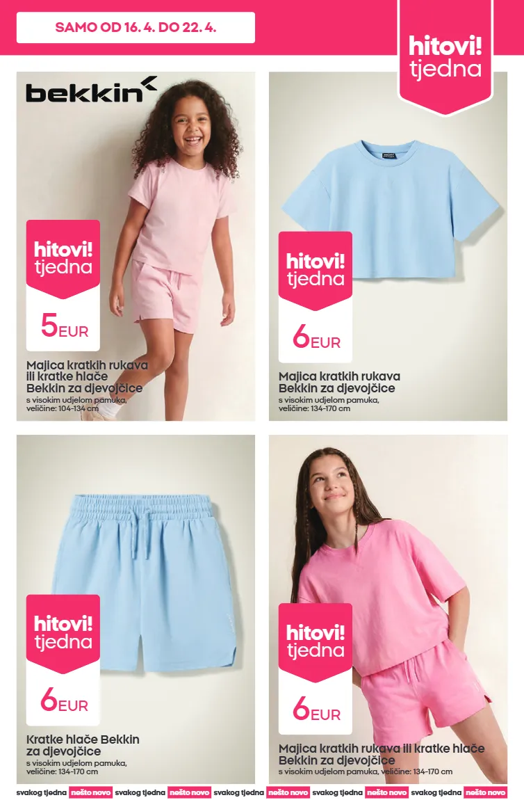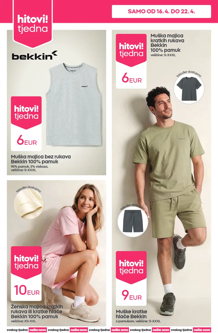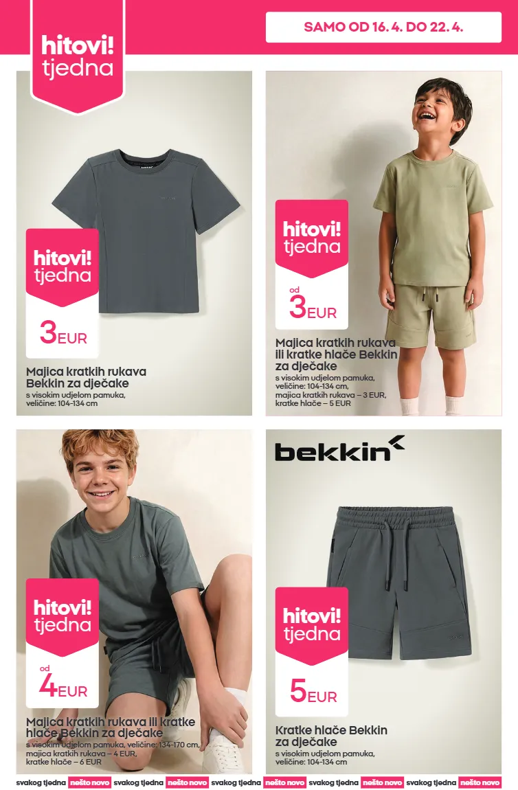 Kolekcija odjeće Bekkin od 3 EUR hitovi! tjedna Ponuda vrijedi od 16. 4. 2026. do 22. 4. 2026. ili do isteka zaliha. Ponuda se može razlikovati u pojedinim trgovinama. SAMO OD 16. 4. DO 22. 4.