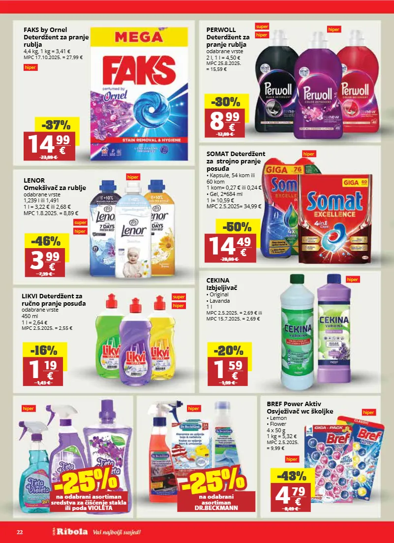 22 super hiper super hiper super hiper hiper hiper hiper hiper hiper hiper hiper hiper hiper faks by ornel deterdžent za pranje rublja 4,4 kg, 1 kg = 3,41 € mpc 17.10.2025. = 27,99 € perwoll deterdžent za pranje rublja odabrane vrste 2 l, 1 l = 4,50 € mpc 25.8.2025. = 15,59 € lenor omekšivač za rublje odabrane vrste 1,239 l ili 1,491 1 l = 3,22 € ili 2,68 € mpc 1.8.2025. = 8,89 € somat deterdžent za strojno pranje posuđa • kapsule, 54 kom ili 60 kom 1 kom= 0,27 € ili 0,24 € • gel, 2*684 ml 1 l= 10,59 € mpc 2.5.2025= 34,99 € cekina izbjeljivač • original • lavanda 1 l mpc 2.5.2025. = 2,69 € ili mpc 15.7.2025. = 2,69 € bref power aktiv osvježivač wc školjke • lemon • flower 4 x 50 g 1 kg = 5,32 € mpc 2.5.2025. = 9,99 € likvi deterdžent za ručno pranje posuđa odabrane vrste 450 ml 1 l = 2,64 € mpc 2.5.2025. = 2,55 € -30% 8 99 12,99 € -46% 3 99 7,39 € -16% 1 19 1,43 € -20% 1 59 1,99 € -43% 4 79 8,49 € -37% 14 99 23,99 € -50% 14 49 28,99 € -25% -25% na odabrani asortiman sredstva za čišćenje stakla ili poda violeta -25% -25% na odabrani asortiman dr.beckmann