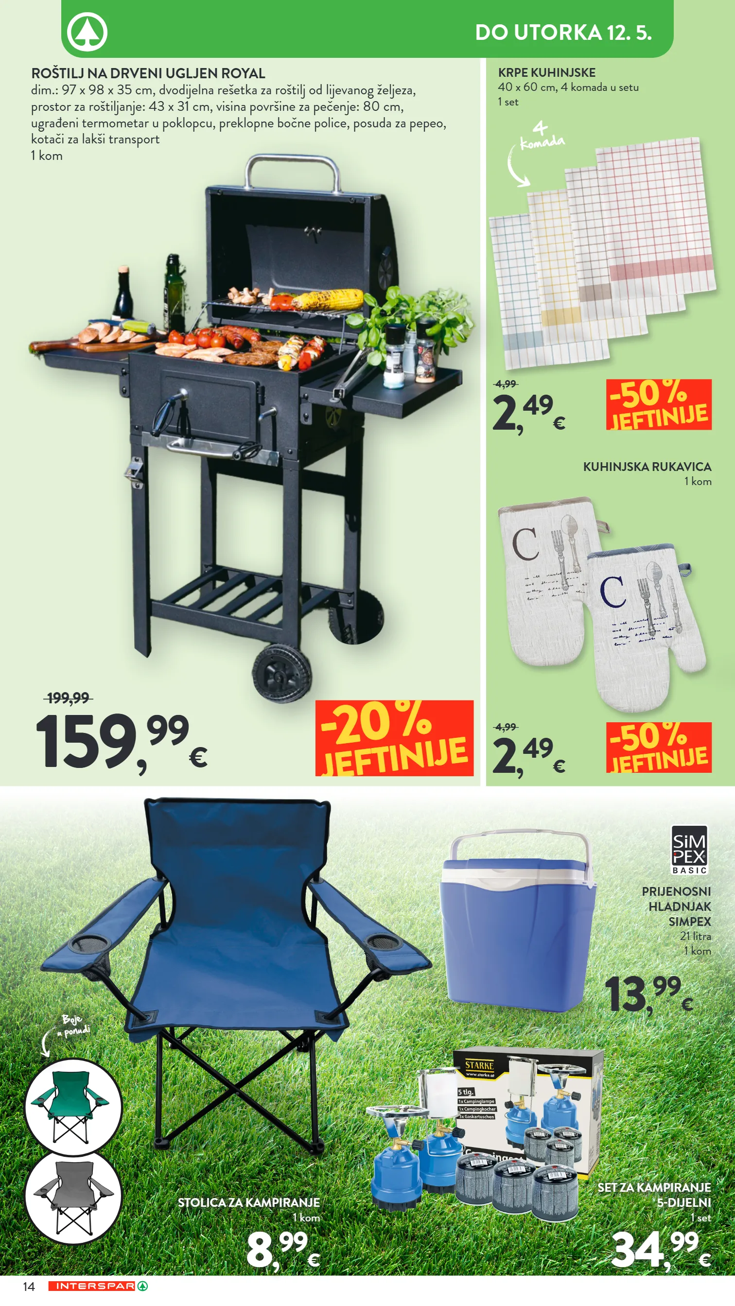roštilj na drveni ugljen royal dim.: 97 x 98 x 35 cm, dvodijelna rešetka za roštilj od lijevanog željeza, prostor za roštiljanje: 43 x 31 cm, visina površine za pečenje: 80 cm, ugrađeni termometar u poklopcu, preklopne bočne police, posuda za pepeo, kotači za lakši transport 1 kom 159 , 99 € 199,99 -20 % jeftinije krpe kuhinjske 40 x 60 cm, 4 komada u setu 1 set kuhinjska rukavica 1 kom 2 , 49 € 4,99 2 , 49 € 4,99 -50 % jeftinije -50 % jeftinije stolica za kampiranje 1 kom prijenosni hladnjak simpex 21 litra 1 kom set za kampiranje 5-dijelni 1 set 8 , 99 € 34 , 99 € 13 , 99 € boje u ponudi 4 komada 14 do utorka 12. 5.