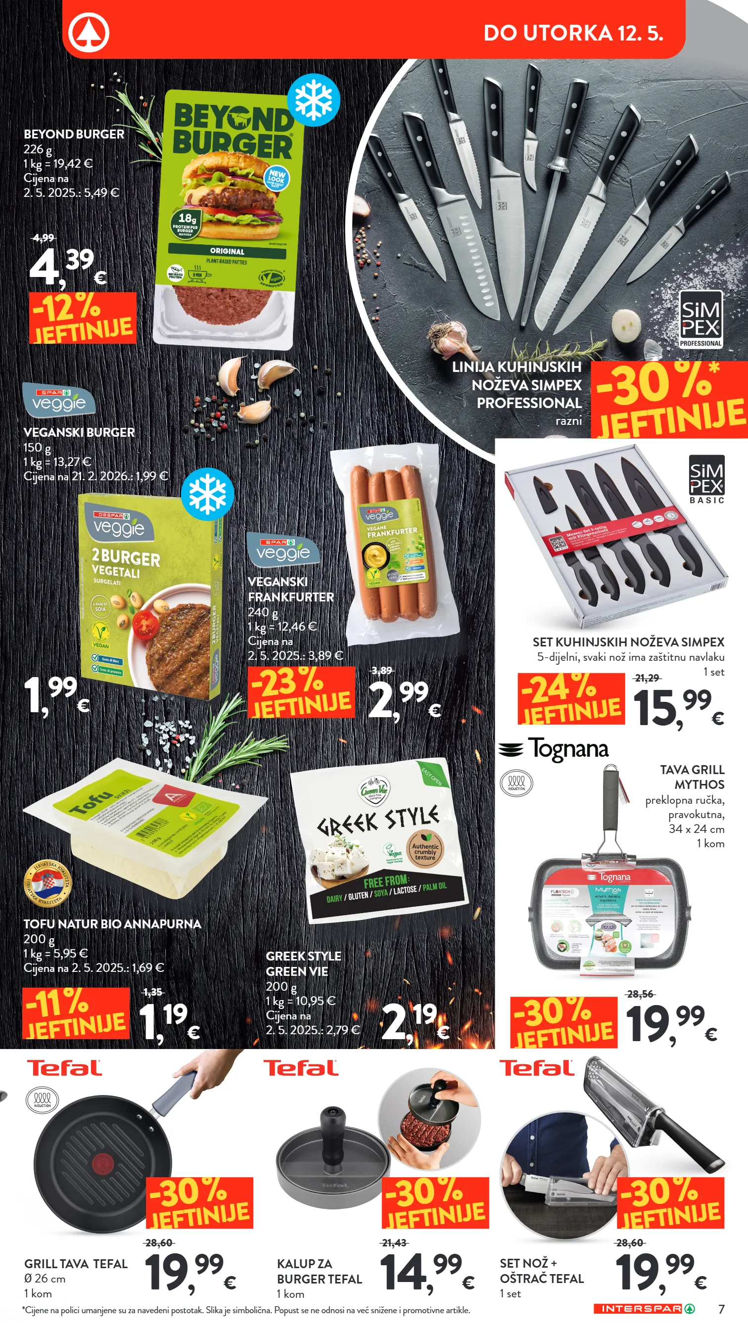*cijene na polici umanjene su za navedeni postotak. slika je simbolična. popust se ne odnosi na već snižene i promotivne artikle. beyond burger 226 g 1 kg = 19,42 € cijena na 2. 5. 2025.: 5,49 € veganski burger 150 g 1 kg = 13,27 € cijena na 21. 2. 2026.: 1,99 € tofu natur bio annapurna 200 g 1 kg = 5,95 € cijena na 2. 5. 2025.: 1,69 € greek style green vie 200 g 1 kg = 10,95 € cijena na 2. 5. 2025.: 2,79 € veganski frankfurter 240 g 1 kg = 12,46 € cijena na 2. 5. 2025.: 3,89 € -11 % jeftinije set kuhinjskih noževa simpex 5-dijelni, svaki nož ima zaštitnu navlaku 1 set tava grill mythos preklopna ručka, pravokutna, 34 x 24 cm 1 kom 15 , 99 € 21,29 4 , 39 € 4,99 1 , 99 € 1 , 19 € 1,35 2 , 19 € 2 , 99 € 3,89 19 , 99 € 28,56 19 , 99 € 28,60 14 , 99 € 21,43 19 , 99 € 28,60 -24 % jeftinije -12 % jeftinije -23 % jeftinije -30 % jeftinije -30 % jeftinije -30 % jeftinije -30 % jeftinije -30 % * jeftinije linija kuhinjskih noževa simpex professional razni grill tava tefal ø 26 cm 1 kom kalup za burger tefal 1 kom set nož + oštrač tefal 1 set 7 do utorka 12. 5.