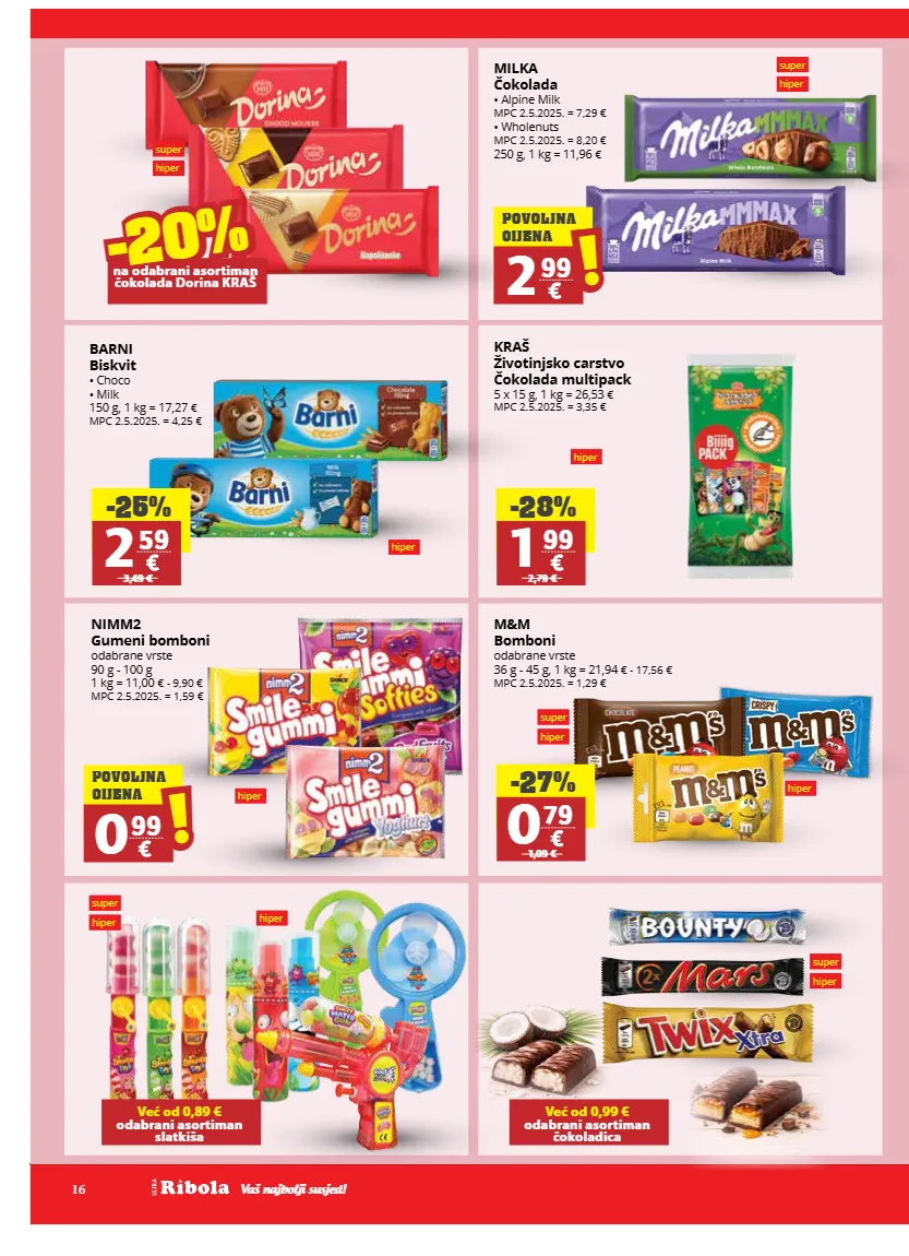 vaš najbolji susjed! 16 super hiper super hiper super hiper super hiper super hiper super hiper super hiper super hiper super hiper super hiper hiper hiper hiper hiper milka čokolada • alpine milk mpc 2.5.2025. = 7,29 € • wholenuts mpc 2.5.2025. = 8,20 € 250 g, 1 kg = 11,96 € kraš životinjsko carstvo čokolada multipack 5 x 15 g, 1 kg = 26,53 € mpc 2.5.2025. = 3,35 € nimm2 gumeni bomboni odabrane vrste 90 g - 100 g 1 kg = 11,00 € - 9,90 € mpc 2.5.2025. = 1,59 € m&m bomboni odabrane vrste 36 g - 45 g, 1 kg = 21,94 € - 17,56 € mpc 2.5.2025. = 1,29 € -28% 1 99 2,79 € -25% 2 59 3,49 € -27% 0 79 1,09 € hiper barni biskvit • choco • milk 150 g, 1 kg = 17,27 € mpc 2.5.2025. = 4,25 € 2 99 ! ! povoljna cijena 0 99 ! ! povoljna cijena -20% -20% na odabrani asortiman čokolada dorina kraš već od 0,99 € odabrani asortiman čokoladica već od 0,89 € odabrani asortiman slatkiša