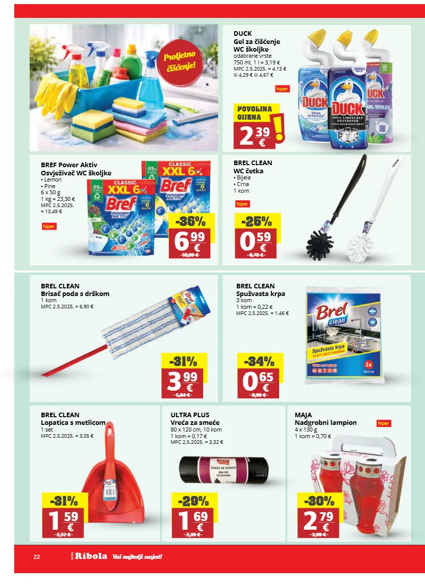 vaš najbolji susjed! proljetno čišćenje! 22 duck gel za čišćenje wc školjke odabrane vrste 750 ml, 1 l = 3,19 € mpc 2.5.2025. = 4,13 € ili 4,29 € ili 4,67 € bref power aktiv osvježivač wc školjke • lemon • pine 6 x 50 g 1 kg = 23,30 € mpc 2.5.2025. = 13,49 € brel clean brisač poda s drškom 1 kom mpc 2.5.2025. = 6,90 € brel clean wc četka • bijela • crna 1 kom brel clean lopatica s metlicom 1 set mpc 2.5.2025. = 3,05 € maja nadgrobni lampion 4 x 130 g 1 kom = 0,70 € -36% 6 99 10,99 € -31% 3 99 5,84 € -25% 0 59 0,79 € -30% 2 79 3,99 € ultra plus vreća za smeće 80 x 120 cm, 10 kom 1 kom = 0,17 € mpc 2.5.2025. = 3,32 € -29% 1 69 2,39 € brel clean spužvasta krpa 3 kom 1 kom = 0,22 € mpc 2.5.2025. = 1,46 € -34% 0 65 0,99 € -31% 1 59 2,32 € 2 39 ! ! povoljna cijena hiper hiper hiper hiper