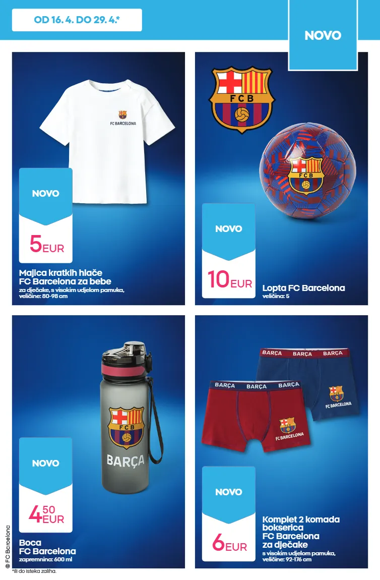© fc barcelona boca fc barcelona zapremnina: 600 ml lopta fc barcelona veličina: 5 komplet 2 komada bokserica fc barcelona za dječake s visokim udjelom pamuka, veličine: 92-176 cm majica kratkih hlače fc barcelona za bebe za dječake, s visokim udjelom pamuka, veličine: 80-98 cm 4 50 eur novo 10 eur novo 6 eur novo 5 eur novo novo *ili do isteka zaliha. od 16. 4. do 29. 4.*