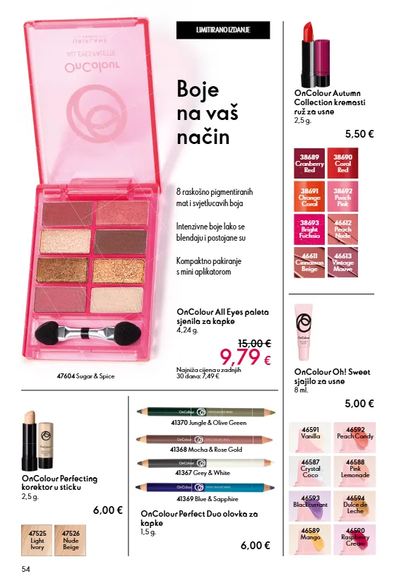 hr 154007.1 pozdrav! razgovarajte s nama putem chata na hr.oriflame.com copyright ©2026 oriflame cosmetics ag oriflame holdings bv hoogstraat 10b, 5462 cx veghel, netherlands c love nature simple joys gel za tuširanje s organskom jagodom 250 ml. 47193 6,50 € najniža cijena u zadnjih 30 dana: 2,99 € a love nature simple joys gel za tuširanje s organskim ananasom 250 ml. 47010 6,50 € najniža cijena u zadnjih 30 dana: 2,99 € b love nature simple joys gel za tuširanje s organskom aloe verom 250 ml. 47009 6,50 € najniža cijena u zadnjih 30 dana: 2,99 € 3,29 € najbolja cijena godine svaki samo a b c