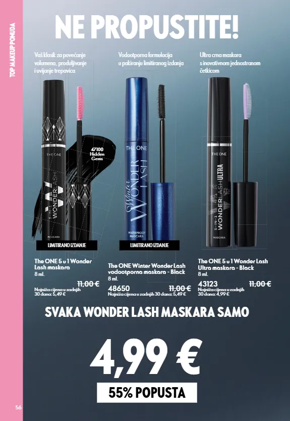 33 Makeup str. 56 -25% str. 35 Brzi put do besprijekornih noktiju str. 39 Vaš saveznik za preciznu njegu noktiju HD trepavice DO 55% POPUSTA NA ODABRANE PROIZVODE ZA KAPKE I OBRVE Naglasite svoj pogled s lakoćom zahvaljujući našim The ONE proizvodima, sada po povoljnim cijenama. ODABERITE SVOJU OMILJENU WONDER LASH MASKARU UZ 55% POPUSTA Naše multifunkcionalne maskare sada su dostupne po super cijeni - odaberite svoju omiljenu i uštedite! KREIRAJTE IZGLED NOKTIJU KAO IZ SALONA KOD KUĆE Otkrijte našu novu kolekciju za nokte i učinite svoju manikuru jednostavnom i ugodnom. IZGLED KOJI OČARAVA