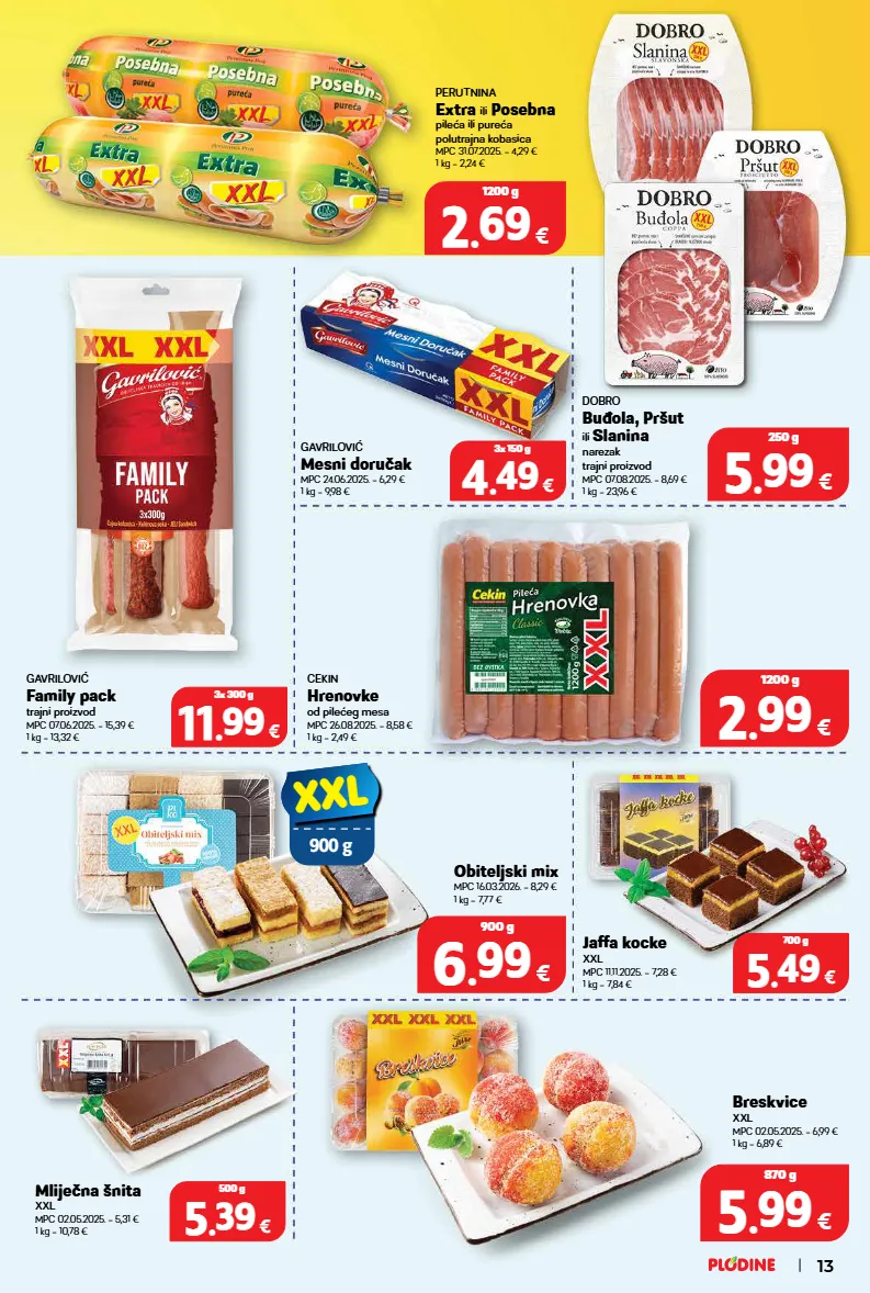somun šlapica mpc 02.05.2025. = 0,49 € 1 kg = 3,25 € oho! peciva odabrane vrste mpc 24.02.2026. = 1,99 € doline feta sir mpc 26.02.2026. = 3,29 € 1 kg = 11,95 € zvijezda majoneza delikates ili ultra hot mpc 09.07.2025. = 4,89 € 1 kg = 8,73 € meggle masline ili paprika sa sirom mpc 12.09.2025. = 4,59 € 1 kg = 16,62 € president mladi kajmak 80% m.m. mpc 07.06.2025. = 4,49 € 1 kg = 15,96 € zvijezda ketchup blagi 1 kg mpc 09.07.2025. = 3,29 € mautner senf razne vrste 200 - 350 g -15% -15% ledo pommes frites smrznuti mpc 02.05.2025. = 4,29 € perutnina marinirani pileći odrezak zabatka mpc 02.05.2025. = 5,79 € 1 kg = 12,23 € cekin pileći batak svježi mpc 09.07.2025. = 6,69 € top cijena! već od hit cijena! 2 2 . . 39 39 € 200 g super prilika! super prilika! 0 0 . . 69 69 € 150 g - 300 g već od već od top cijena! već od hit cijena! 0 0 . . 39 39 € € 120 g super prilika! super prilika! top cijena! već od hit cijena! 3 3 . . 49 49 € € 210 g super prilika! super prilika! top cijena! već od hit cijena! 4 4 . . 89 89 € € 400 g super prilika! super prilika! top cijena! već od hit cijena! 3 3 . . 29 29 € € 1 kg super prilika! super prilika! top cijena! već od hit cijena! 3 3 . . 19 19 € € 1 kg super prilika! super prilika! top cijena! već od hit cijena! 3 3 . . 99 99 € € 250 g super prilika! super prilika! top cijena! već od hit cijena! 3 3 . . 49 49 € € 400 g super prilika! super prilika! 2 2 . . 39 39 € € xxxxx 2.99 € -20% -20% drniška tradicija drniška kobasica polutrajni proizvod 320 g mpc 20.04.2026. = 3,59 € 1 kg = 11,22 € plati manje 4.49 € -20% -20% 3 3 . . 59 59 € ponuda povoljnije uz 7