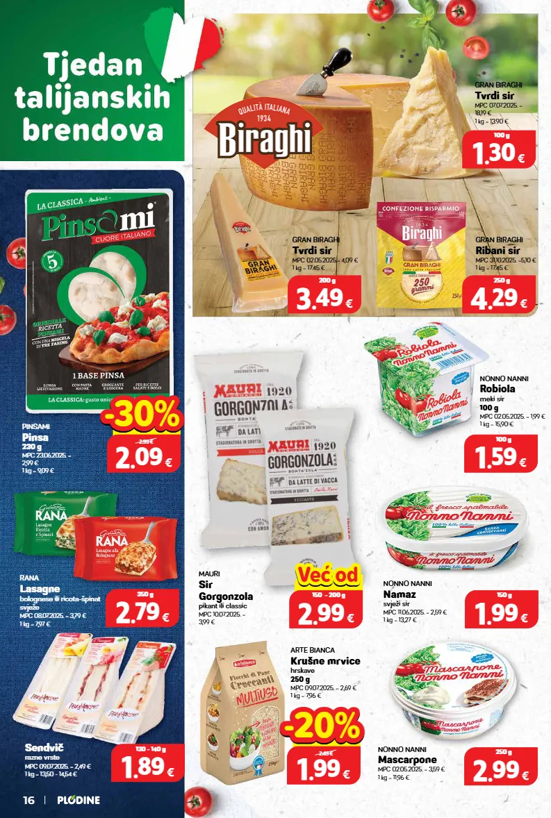 nonno nanni namaz svježi sir mpc 11.06.2025. = 2,59 € 1 kg = 13,27 € nonno nanni mascarpone mpc 02.05.2025. = 3,59 € 1 kg = 11,96 € pinsami pinsa 230 g mpc 23.06.2025. = 2,99 € 1 kg = 9,09 € mauri sir gorgonzola pikant ili classic mpc 10.07.2025. = 3,99 € rana lasagne bolognese ili ricota-špinat svježe mpc 08.07.2025. = 3,79 € 1 kg = 7,97 € gran biraghi tvrdi sir mpc 07.07.2025. = 18,19 € 1 kg = 13.90 € gran biraghi tvrdi sir mpc 02.05.2025.= 4,09 € 1 kg = 17.45 € gran biraghi ribani sir mpc 31.10.2025. =5,10 € 1 kg = 17.45 € 2 2 . . 09 09 € 230 g 2.99 € -30% -30% 1 1 . . 99 99 € 150 g 2 2 . . 99 99 € 250 g 2 2 . . 79 79 € 350 g top cijena! već od hit cijena! 2 2 . . 99 99 € 150 - 200 g već od već od 3 3 . . 49 49 € 200 g 4 4 . . 29 29 € 250 g 1 1 . . 30 30 € 100 g nonno nanni robiola meki sir 100 g mpc 02.05.2025. = 1,99 € 1 kg = 15,90 € 1 1 . . 59 59 € 100 g arte bianca krušne mrvice hrskave 250 g mpc 09.07.2025. = 2,69 € 1 kg = 7,96 € 1 1 . . 99 99 € 250 g 2.49 € -20% -20% sendvič razne vrste mpc 09.07.2025. = 2,49 € 1 kg = 13,50 - 14,54 € 1 1 . . 89 89 € 130 - 140 g 16