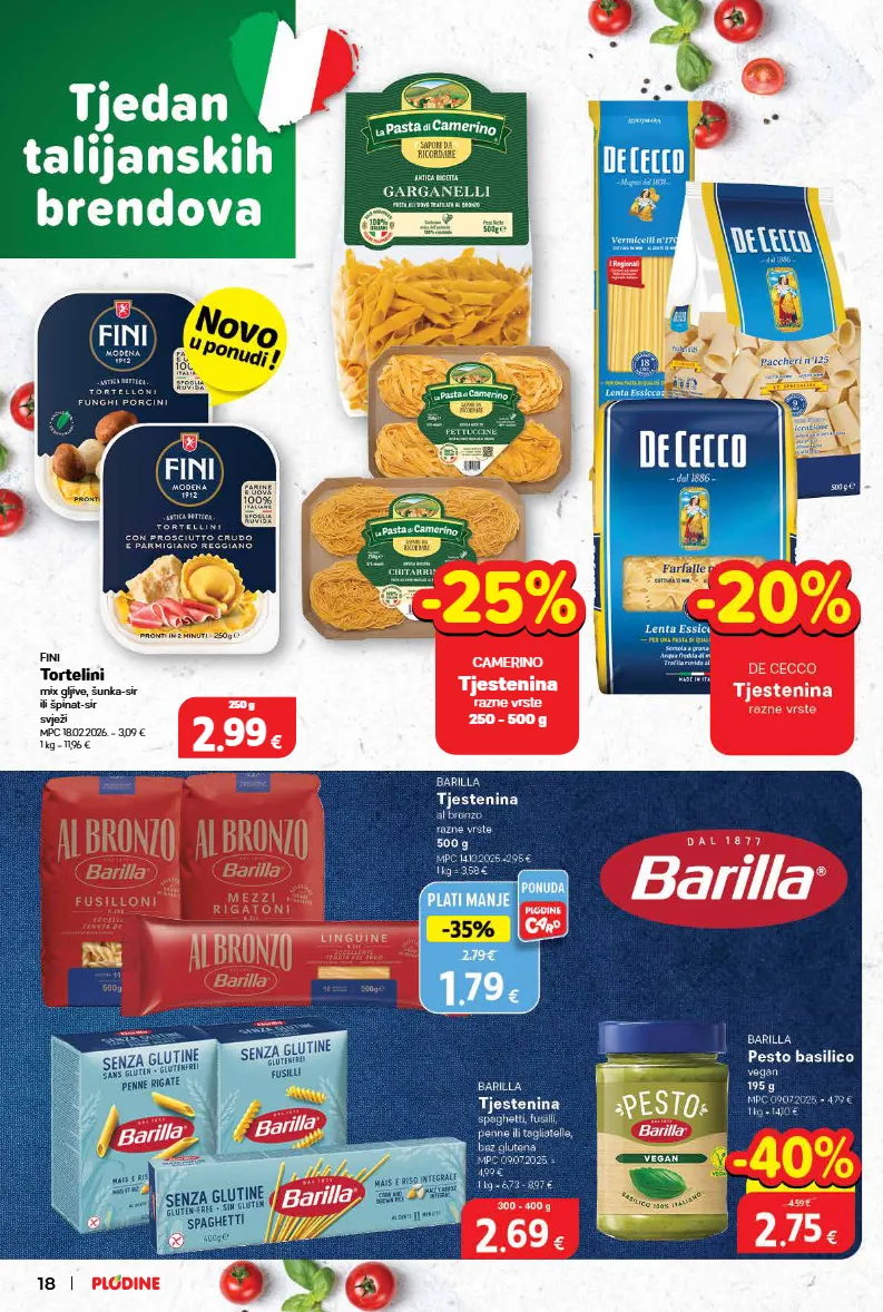 camerino tjestenina razne vrste 250 - 500 g -25% -25% fini tortelini mix gljive, šunka-sir ili špinat-sir svježi mpc 18.02.2026. = 3,09 € 1 kg = 11,96 € 2 2 . . 99 99 € 250 g 18