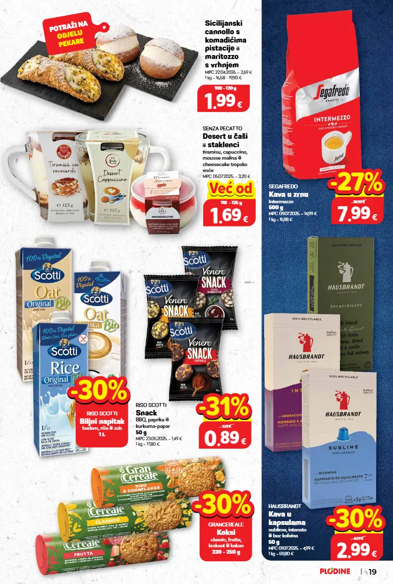 segafredo kava u zrnu intermezzo 500 g mpc 09.07.2025. = 14,99 € 1 kg = 15,98 € 7 7 . . 99 99 € 500 g 10.99 € -27% -27% senza pecatto desert u čaši ili staklenci tiramisu, capuccino, mousse malina ili cheesecake tropsko voće mpc 05.07.2025. = 3,20 € top cijena! već od hit cijena! 1 1 . . 69 69 € 110 - 125 g već od već od hausbrandt kava u kapsulama sublime, intensto ili bez kofeina 50 g mpc 01.07.2025. = 4,99 € 1 kg = 59,80 € 2 2 . . 99 99 € 50 g 4.29 € -30% -30% sicilijanski cannollo s komadićima pistacije ili maritozzo s vrhnjem mpc 22.04.2026. = 2,69 € 1 kg = 16,58 - 19,90 € 1 1 . . 99 99 € 100 - 120 g riso scotti snack bbq, paprika ili kurkuma-papar 50 g mpc 23.05.2025. = 1,49 € 1 kg = 17,80 € 0 0 . . 89 89 € 50 g 1.29 € -31% -31% riso scotti biljni napitak badem, riža ili zob 1 l -30% -30% grancereale keksi classic, frutta, krokant ili kakao 230 - 250 g -30% -30% potraži na odjelu pekare 19