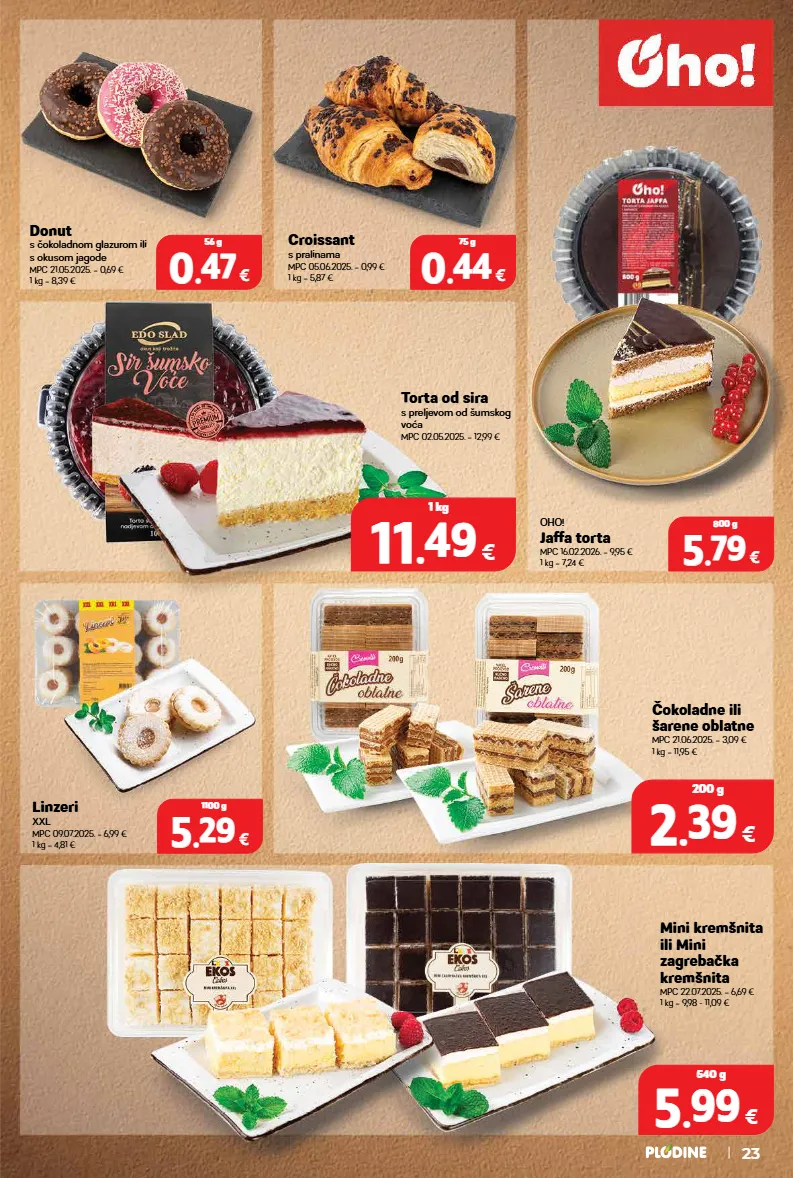 oho! jaffa torta mpc 16.02.2026. = 9,95 € 1 kg = 7,24 € 5 5 . . 79 79 € 800 g donut s čokoladnom glazurom ili s okusom jagode mpc 21.05.2025. = 0,69 € 1 kg = 8,39 € 0 0 . . 47 47 € 56 g croissant s pralinama mpc 05.06.2025. = 0,99 € 1 kg = 5,87 € 0 0 . . 44 44 € 75 g torta od sira s preljevom od šumskog voća mpc 02.05.2025. = 12,99 € 11 11 . . 49 49 € 1 kg linzeri xxl mpc 09.07.2025. = 6,99 € 1 kg = 4,81 € 5 5 . . 29 29 € 1100 g čokoladne ili šarene oblatne mpc 21.06.2025. = 3,09 € 1 kg = 11,95 € 2 2 . . 39 39 € 200 g mini kremšnita ili mini zagrebačka kremšnita mpc 22.07.2025. = 6,69 € 1 kg = 9,98 - 11,09 € 5 5 . . 99 99 € 540 g 23