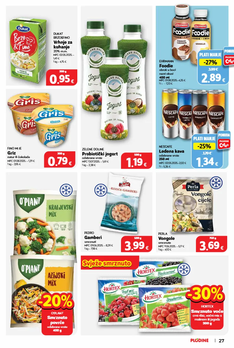 hortex smrznuto voće crni ribiz, voćni mix s malinom ili jagoda 300 g -30% -30% pedro gamberi smrznuti mpc 09.06.2025. = 8,39 € 1 kg = 7,98 € 3 3 . . 99 99 € 500 g svježe smrznuto svježe smrznuto zelene doline probiotički jogurt odabrane vrste mpc 13.07.2025. = 1,69 € 1 kg = 2,38 € 1 1 . . 19 19 € 500 g dukat brzo&fino vrhnje za kuhanje 20% m.m. mpc 02.05.2025. = 1,49 € 1 kg = 4,75 € 0 0 . . 95 95 € 200 g plati manje 1.79 € -25% -25% 1 1 . . 34 34 € ponuda nescafe ledena kava odabrane vrste 250 ml mpc 02.05.2025.=2,02 € 1 l = 5,36 € plati manje 3.99 € -27% -27% 2 2 . . 89 89 € ponuda ehrmann foodie obrok u boci razni okusi 400 ml mpc 01.08.2025.=4,25 € 1 l = - 7,23 € fino mi je griz natur ili čokolada mpc 01.08.2025. = 1,29 € 1 kg = 3,95 € 0 0 . . 79 79 € 200 g o’plant smrznuto povrće odabrane vrste 400 g -20% -20% perla vongole smrznute mpc 11.06.2025. = 5,17 € 1 kg = 4,92 € 3 3 . . 69 69 € 750 g 27