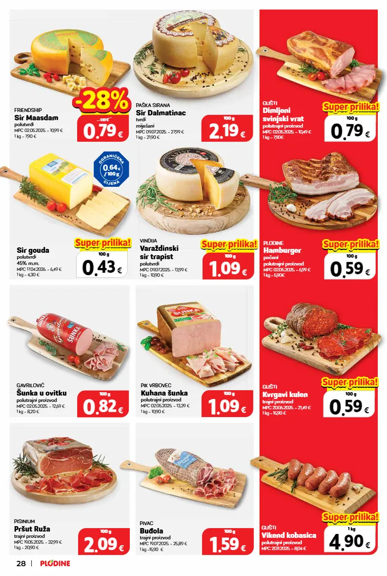 gavrilović šunka u ovitku polutrajni proizvod mpc 02.05.2025. = 12,69 € 1 kg = 8,20 € friendship sir maasdam polutvrdi mpc 02.05.2025. = 10,99 € 1 kg = 7,90 € pik vrbovec kuhana šunka polutrajni proizvod mpc 02.05.2025. = 13,39 € 1 kg = 10,90 € gušti kvrgavi kulen trajni proizvod mpc 20.06.2025. = 21,49 € 1 kg = 15,90 € sir gouda polutvrdi 45% m.m. mpc 17.04.2026. = 6,49 € 1 kg = 4,30 € 0 0 . . 82 82 € 100 g 1 1 . . 09 09 € 100 g top cijena! već od hit cijena! 0 0 . . 43 43 € 100 g super prilika! super prilika! top cijena! već od hit cijena! 0 0 . . 79 79 € 100 g super prilika! super prilika! top cijena! već od hit cijena! 0 0 . . 59 59 € 100 g super prilika! super prilika! top cijena! već od hit cijena! 0 0 . . 59 59 € 100 g super prilika! super prilika! top cijena! već od hit cijena! 4 4 . . 90 90 € 1 kg super prilika! super prilika! pisinium pršut ruža trajni proizvod mpc 19.05.2025. = 32,99 € 1 kg = 20,90 € 2 2 . . 09 09 € 100 g 0 0 . . 79 79 € 860 g 1.10 € -28% -28% plodine hamburger pečeni polutrajni proizvod mpc 02.05.2025. = 6,99 € 1 kg = 5,90€ gušti vikend kobasica polutrajni proizvod mpc 20.11.2025. = 8,04 € gušti dimljeni svinjski vrat polutrajni proizvod mpc 02.05.2025. = 10,49 € 1 kg = 7,90€ pivac buđola trajni proizvod mpc 19.07.2025. = 25,89 € 1 kg =15,90 € 1 1 . . 59 59 € 100 g vindija varaždinski sir trapist polutvrdi mpc 09.07.2025. = 13,99 € 1 kg = 10,90 € top cijena! već od hit cijena! 1 1 . . 09 09 € 100 g super prilika! super prilika! paška sirana sir dalmatinac tvrdi miješani mpc 09.07.2025. = 27,99 € 1 kg = 21,90 € 2 2 . . 19 19 € 100 g 0 . 64 € / 100 g 28