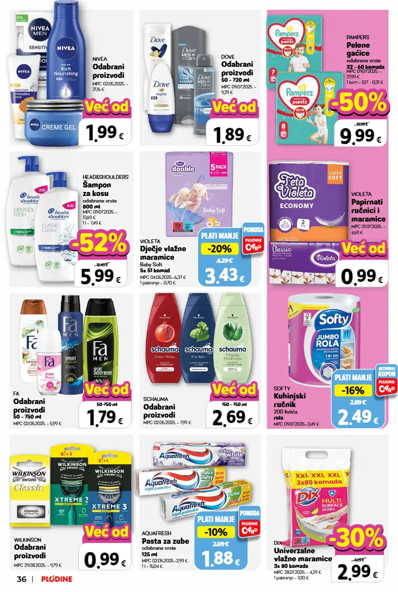 dix univerzalne vlažne maramice 3x 80 komada mpc 28.07.2025. = 4,29 € 1 pakiranje = 1,00 € 2 2 . . 99 99 € 3x 80 kom 4.29 € -30% -30% schauma odabrani proizvodi mpc 02.05.2025. = 7,99 € top cijena! već od hit cijena! 2 2 . . 69 69 € 150 - 750 ml već od već od wilkinson odabrani proizvodi mpc 29.08.2025. = 9,79 € top cijena! već od hit cijena! 0 0 . . 99 99 € već od već od fa odabrani proizvodi 50 - 750 ml mpc 02.05.2025. = 5,99 € top cijena! već od hit cijena! 1 1 . . 79 79 € 50-750 ml već od već od dove odabrani proizvodi 50 - 720 ml mpc 09.07.2025. = 9,29 € top cijena! već od hit cijena! 1 1 . . 89 89 € već od već od nivea odabrani proizvodi mpc 02.05.2025. = 21,16 € top cijena! već od hit cijena! 1 1 . . 99 99 € već od već od head&shoulders šampon za kosu odabrane vrste 800 ml mpc 09.07.2025. = 13,69 € 1 l = 7,49 € 5 5 . . 99 99 € 800 ml 12.49 € -52% -52% aquafresh pasta za zube odabrane vrste 125 ml mpc 02.05.2025.=2,99 € 1 l = 15,04 € plati manje 2.09 € -10% -10% 1 1 . . 88 88 € ponuda violeta dječje vlažne maramice baby soft 5x 51 komad mpc 04.06.2025.=6,37 € 1 pakiranje = 0,70 € plati manje 4.29 € -20% -20% 3 3 . . 43 43 € ponuda plati manje 2.99 € -16% -16% 2 2 . . 49 49 € aktiviraj kupon softy kuhinjski ručnik 200 listića rola mpc 09.07.2025.=3,49 € pampers pelene gaćice odabrane vrste 32 - 60 komada mpc 09.07.2025. = 21,99 € 1 kom = 0,17 - 0,31 € 9 9 . . 99 99 € 32 - 60 komada 19.99 € -50% -50% top cijena! već od hit cijena! 0 0 . . 99 99 € već od već od violeta papirnati ručnici i maramice mpc 01.07.2025. = 4,69 € 36