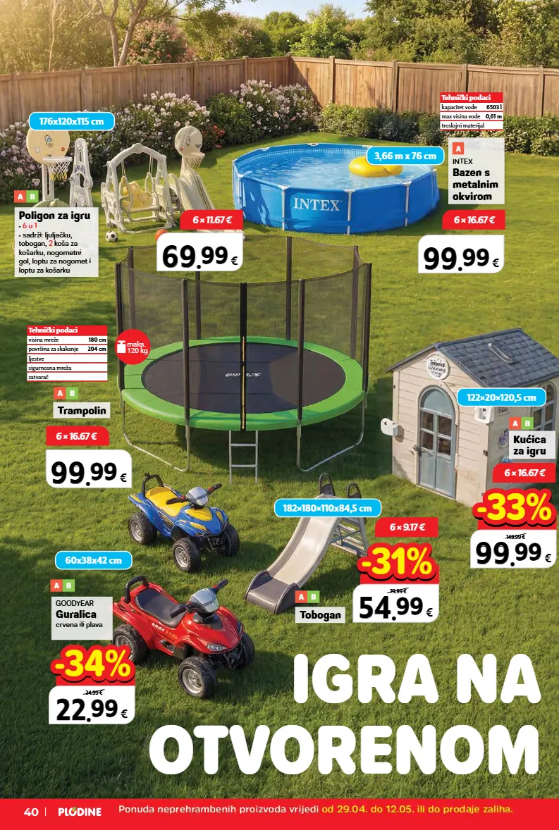 a b trampolin poligon za igru • 6 u 1 • sadrži: ljuljačku, tobogan, 2 koša za košarku, nogometni gol, loptu za nogomet i loptu za košarku a b goodyear guralica crvena ili plava a b tobogan a b 54 54 . . 99 99 € 79.99 € -31% -31% 6 × 9.17 € 22 22 . . 99 99 € 34.99 € -34% -34% 99 99 . . 99 99 € 6 × 16.67 € 69 69 . . 99 99 € 6 × 11.67 € 99 99 . . 99 99 € 6 × 16.67 € intex bazen s metalnim okvirom a maks. 120 kg tehnički podaci visina mreže 180 cm površina za skakanje 204 cm ljestve sigurnosna mreža zatvarač tehnički podaci kapacitet vode 6503 l max visina vode 0,61 m troslojni materijal igra na otvorenom kućica za igru a b 99 99 . . 99 99 € 149.99 € -33% -33% 6 × 16.67 € 122×20×120,5 cm 3,66 m x 76 cm 60x38x42 cm 182×180×110x84,5 cm 176x120x115 cm 40