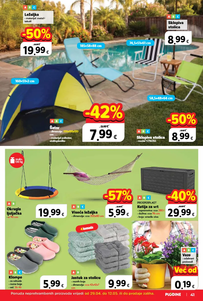 okrugla ljuljačka • ø 110 cm a b prosperplast kutija za vrt • zapremnina: cca 280 l • dužina: cca 116 cm • boja: smeđe-siva a b c klompe • za odrasle • razne boje • vel. 36-46 a b c viseća ležaljka • dimenzije: cca 200x80 cm a b c jastuk za stolicu • raznih boja • dimenzije: cca 42x42x7 cm a b vaze • odabrani proizvodi maks. 130 kg a b c 0 0 . . 19 19 € već od već od 19 19 . . 99 99 € 5 5 . . 99 99 € 13.99 € -57% -57% 5 5 . . 99 99 € 9 9 . . 99 99 € 29 29 . . 99 99 € 49.99 € -40% -40% a b c sklopiva stolica • model yz16055 a b c šator • dimenzije: 220x120x120 cm • materijal poliester, stakloplastika a b c 8 8 . . 99 99 € sklopiva stolica a b c ležaljka • materijal: metal i tekstil a b c 8 8 . . 99 99 € 17.99 € -50% -50% 19 19 . . 99 99 € 39.99 € -50% -50% 7 7 . . 99 99 € 13.99 € -42% -42% 185×58×88 cm 58,5×48×64 cm 74,5×51×61 cm 160×51×2 cm 4 komada 41