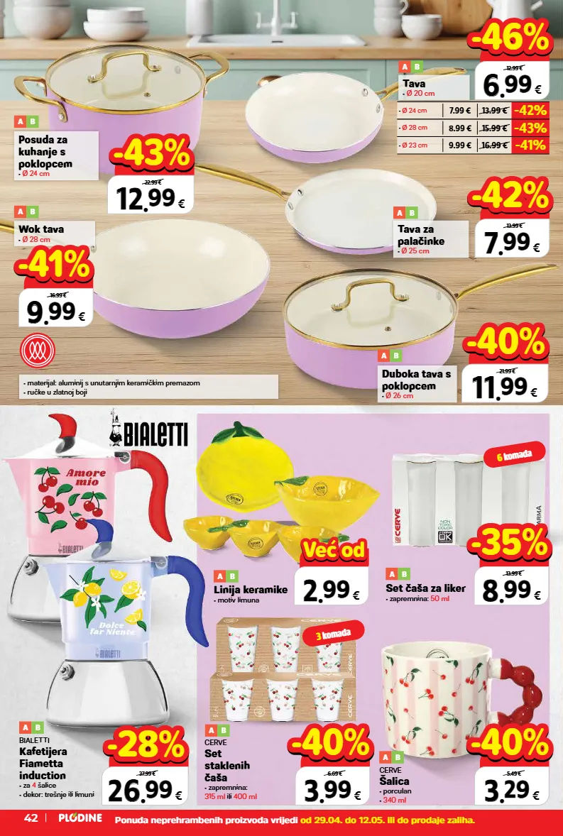 -42% 7.99 € 13.99 € • ø 24 cm -43% 8.99 € 15.99 € • ø 28 cm -41% 9.99 € 16.99 € • ø 23 cm posuda za kuhanje s poklopcem • ø 24 cm a b tava • ø 20 cm a b tava za palačinke • ø 25 cm a b wok tava • ø 28 cm a b duboka tava s poklopcem • ø 26 cm a b cerve set staklenih čaša • zapremnina: 315 ml ili 400 ml a b cerve šalica • porculan • 340 ml a b 3 komada 6 komada bialetti kafetijera fiametta induction • za 4 šalice • dekor: trešnje ili limuni a b linija keramike • motiv limuna a b set čaša za liker • zapremnina: 50 ml a b 6 6 . . 99 99 € 12.99 € -46% -46% 7 7 . . 99 99 € 13.99 € -42% -42% 9 9 . . 99 99 € 16.99 € -41% -41% 12 12 . . 99 99 € 22.99 € -43% -43% 26 26 . . 99 99 € 37.99 € -28% -28% 3 3 . . 29 29 € 5.49 € -40% -40% 3 3 . . 99 99 € 6.69 € -40% -40% 11 11 . . 99 99 € 21.99 € -40% -40% 8 8 . . 99 99 € 13.99 € -35% -35% 2 2 . . 99 99 € već od već od • materijal: aluminij s unutarnjim keramičkim premazom • ručke u zlatnoj boji ponuda neprehrambenih proizvoda vrijedi od 29.04. do 12.05. ili do prodaje zaliha. 42