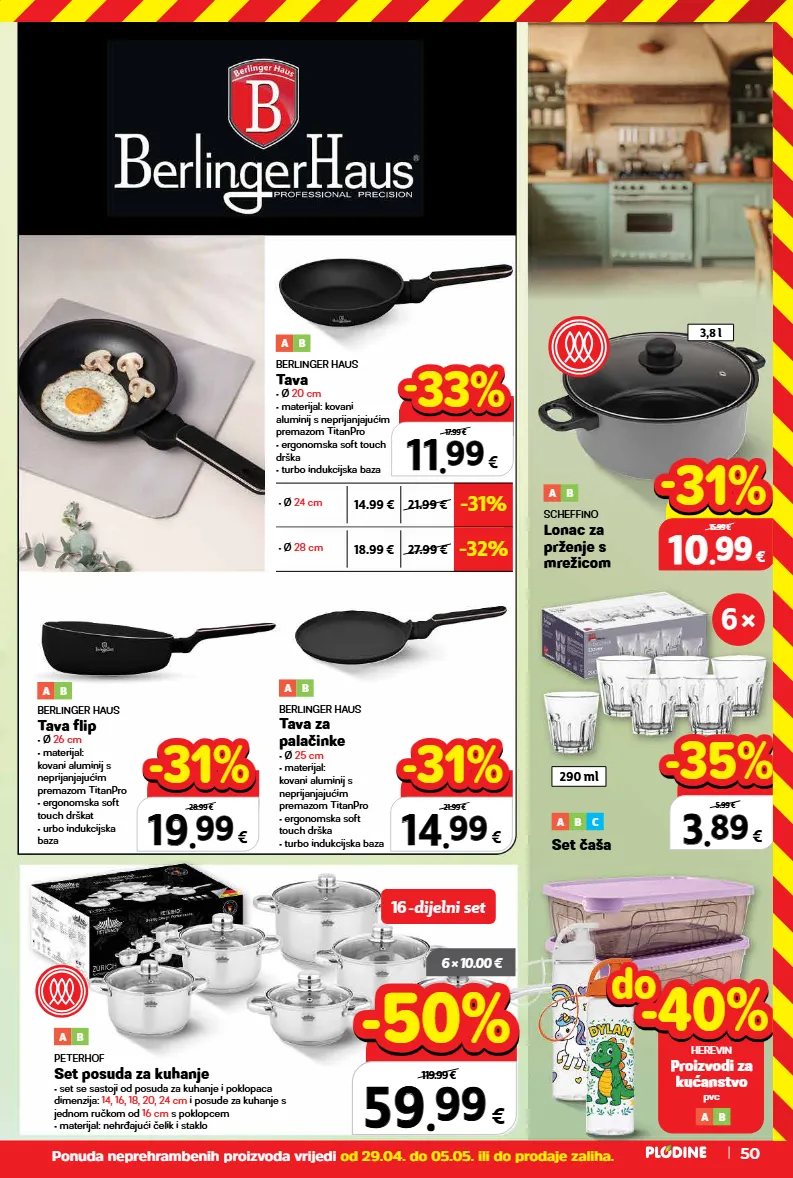 top cijena! već od hit cijena! super prilika! 10 10 . . 99 99 € xxxxx samo u plodinama 15.99 € -31% -31% set čaša a b c peterhof set posuda za kuhanje • set se sastoji od posuda za kuhanje i poklopaca dimenzija: 14, 16, 18, 20, 24 cm i posude za kuhanje s jednom ručkom od 16 cm s poklopcem • materijal: nehrđajući čelik i staklo a b berlinger haus tava flip • ø 26 cm • materijal: kovani aluminij s neprijanjajućim premazom titanpro • ergonomska soft touch drškat • urbo indukcijska baza a b berlinger haus tava za palačinke • ø 25 cm • materijal: kovani aluminij s neprijanjajućim premazom titanpro • ergonomska soft touch drška • turbo indukcijska baza a b berlinger haus tava • ø 20 cm • materijal: kovani aluminij s neprijanjajućim premazom titanpro • ergonomska soft touch drška • turbo indukcijska baza a b scheffino lonac za prženje s mrežicom a b 14 14 . . 99 99 € 21.99 € -31% -31% 19 19 . . 99 99 € 28.99 € -31% -31% 59 59 . . 99 99 € 119.99 € -50% -50% 6 × 10.00 € do do herevin proizvodi za kućanstvo pvc -40% -40% a b 3 3 . . 89 89 € 5.99 € -35% -35% -31% 14.99 € 21.99 € • ø 24 cm -32% 18.99 € 27.99 € • ø 28 cm top cijena! već od hit cijena! super prilika! 11 11 . . 99 99 € xxxxx samo u plodinama 17.99 € -33% -33% ponuda neprehrambenih proizvoda vrijedi od 22.04. do 05.05. ili do prodaje zaliha. 3,8 l 6 × 290 ml 16 - dijelni set ponuda neprehrambenih proizvoda vrijedi od 29.04. do 05.05. ili do prodaje zaliha. 50