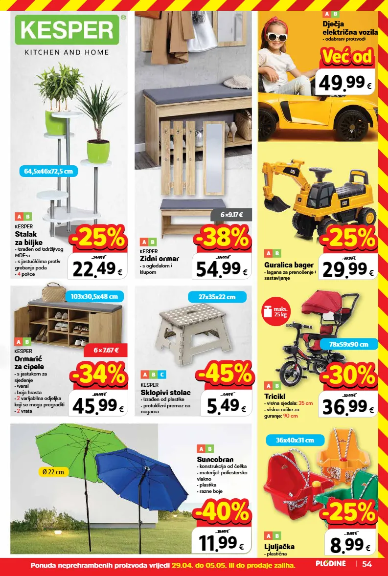 kesper sklopivi stolac • izrađen od plastike • protuklizni premaz na nogama a b c kesper ormarić za cipele • s jastukom za sjedenje • iveral • boja hrasta • 2 varijabilna odjeljka koji se mogu pregraditi • 2 vrata a b kesper zidni ormar • s ogledalom i klupom a b ljuljačka • plastična a b kesper stalak za biljke • izrađen od izdržljivog mdf-a • s jastučićima protiv grebanja poda • 4 police a b tricikl • visina sjedala: 35 cm • visina ručke za guranje: 90 cm a b dječja električna vozila • odabrani proizvodi a b guralica bager • lagana za prenošenje i sastavljanje a b suncobran • konstrukcija od čelika • materijal: poliestersko vlakno • plastika • razne boje a b 11 11 . . 99 99 € 19.99 € -40% -40% xxxxx 49 49 . . 99 99 € već od već od 45 45 . . 99 99 € 69.99 € -34% -34% 6 × 7.67 € 5 5 . . 49 49 € 9.99 € -45% -45% 22 22 . . 49 49 € 29.99 € -25% -25% 29 29 . . 99 99 € 39.99 € -25% -25% 36 36 . . 99 99 € 52.99 € -30% -30% 8 8 . . 99 99 € 11.99 € -25% -25% 54 54 . . 99 99 € 89.99 € -38% -38% 6 ×9.17 € ponuda neprehrambenih proizvoda vrijedi od 22.04. do 05.05. ili do prodaje zaliha. 64,5x46x72,5 cm 78x59x90 cm 36x40x31 cm 103x30,5x48 cm 27x35x22 cm maks. 25 kg ø 22 cm ponuda neprehrambenih proizvoda vrijedi 29.04. do 05.05. ili do prodaje zaliha. 54