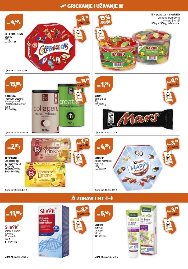 kom 11, 99 € kom 5, 49 € kom 4, 39 € kom 15, 99 € kom 2, 51 € uz aplikaciju kom 1, 89 € od 34,36/ 1 kg uz aplikaciju kom 3, 49 € 21,54/1 kg uz aplikaciju kom 3, 79 € 37,90/1 l uz aplikaciju kom 8, 39 € 83,90/1 kg uz aplikaciju kom 13, 59 € 45,30/1 kg kom 4, 49 € uz aplikaciju kom 3, 39 € 18,23/1 kg uz aplikaciju 15 % akcija kom 1, 09 € uz aplikaciju kom 0, 75 € 14,71/1 kg kolagen štapići 3000 mg 20 komada 100 g € 119,90/1 kg cijena na 2.5.2025.: 11,99 € kneipp aktivgel za noge 100 ml € 54,90/ 1 l cijena na 22.5.2025.: 5,49 € cijena na 2.5.2025.: 3,79 € kinder happy moments mini mix 162 g € 27,10/1 kg cijena na 2.5.2025.: 15,99 € naduria premium creatine monohydrate ili collagen hydrolysat 300 g € 53,30/1 kg teekanne ländertee čaj 20 filter vrećica 36 g – 55 g odabrane vrste € od 45,64 /1 kg cijena na 2.5.2025.: 2,51 € cijena na 2.5.2025.: 4,49 € celebrations praline 186 g € 24,14/1 kg mars čokoladica 51 g € 21,37/1 kg cijena na 2.5.2025.: 0,78 € 15 % popusta na haribo gumene bombone u okrugloj kutiji 950 g – 1350 g, više vrsta. grickanje i uživanje zdravi i fit