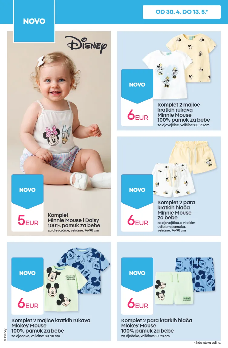 Komplet 2 para kratkih hlača Mickey Mouse 100% pamuk za bebe za dječake, veličine: 80-98 cm Komplet 2 majice kratkih rukava Mickey Mouse 100% pamuk za bebe za dječake, veličine: 80-98 cm Komplet Minnie Mouse i Daisy 100% pamuk za bebe za djevojčice, veličine: 74-98 cm Komplet 2 para kratkih hlača Minnie Mouse za bebe za djevojčice, s visokim udjelom pamuka, veličine: 74-98 cm Komplet 2 majice kratkih rukava Minnie Mouse 100% pamuk za bebe za djevojčice, veličine: 80-98 cm 6 EUR NOVO 6 EUR NOVO 5 EUR NOVO 6 EUR NOVO 6 EUR NOVO NOVO *ili do isteka zaliha. OD 30. 4. DO 13. 5.* © Disney