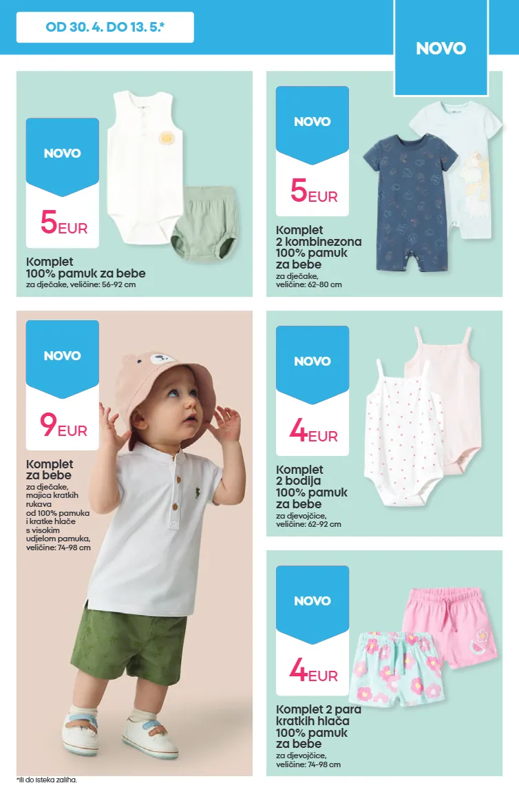 komplet 100% pamuk za bebe za dječake, veličine: 56-92 cm komplet 2 kombinezona 100% pamuk za bebe za dječake, veličine: 62-80 cm komplet 2 bodija 100% pamuk za bebe za djevojčice, veličine: 62-92 cm komplet za bebe za dječake, majica kratkih rukava od 100% pamuka i kratke hlače s visokim udjelom pamuka, veličine: 74-98 cm komplet 2 para kratkih hlača 100% pamuk za bebe za djevojčice, veličine: 74-98 cm 5 eur novo 5 eur novo 4 eur novo 9 eur novo 4 eur novo novo *ili do isteka zaliha. od 30. 4. do 13. 5.*