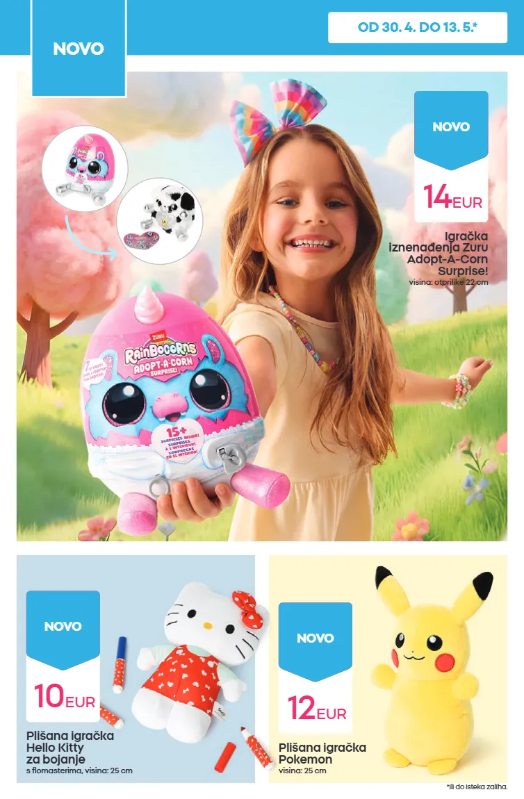 Plišana igračka Hello Kitty za bojanje s flomasterima, visina: 25 cm Plišana igračka Pokemon visina: 25 cm Igračka iznenađenja Zuru Adopt-A-Corn Surprise! visina: otprilike 22 cm 10 EUR NOVO 12 EUR NOVO 14 EUR NOVO NOVO *ili do isteka zaliha. OD 30. 4. DO 13. 5.*
