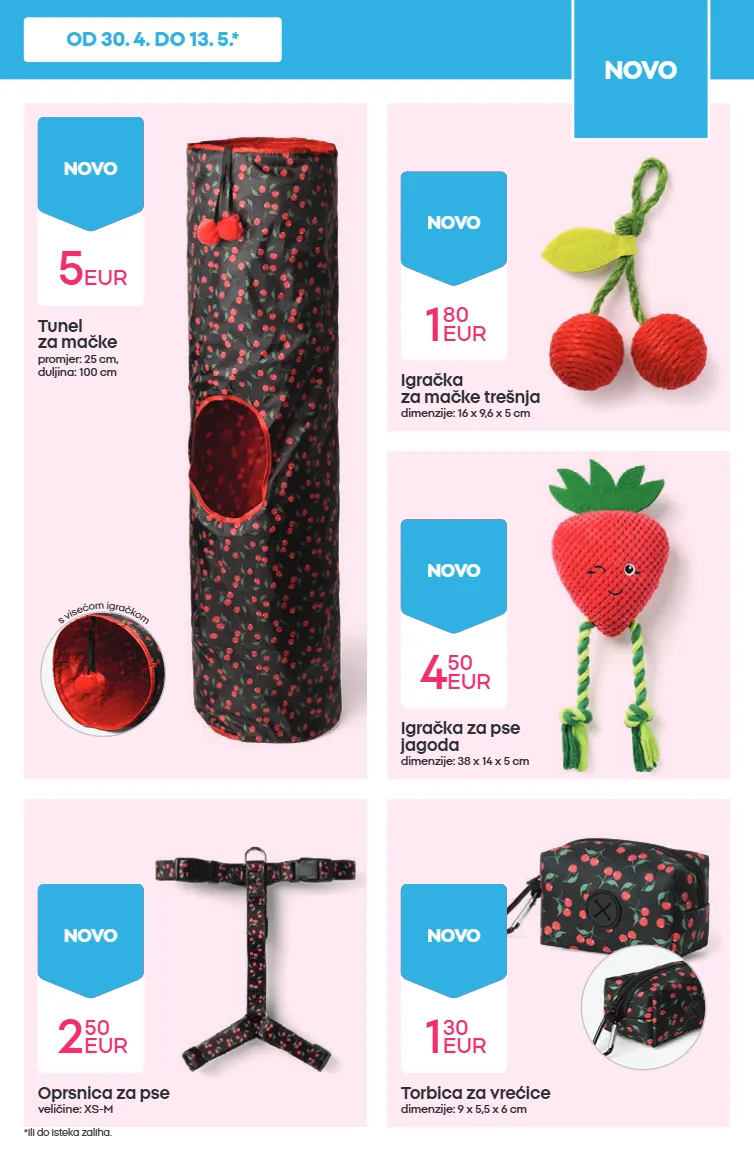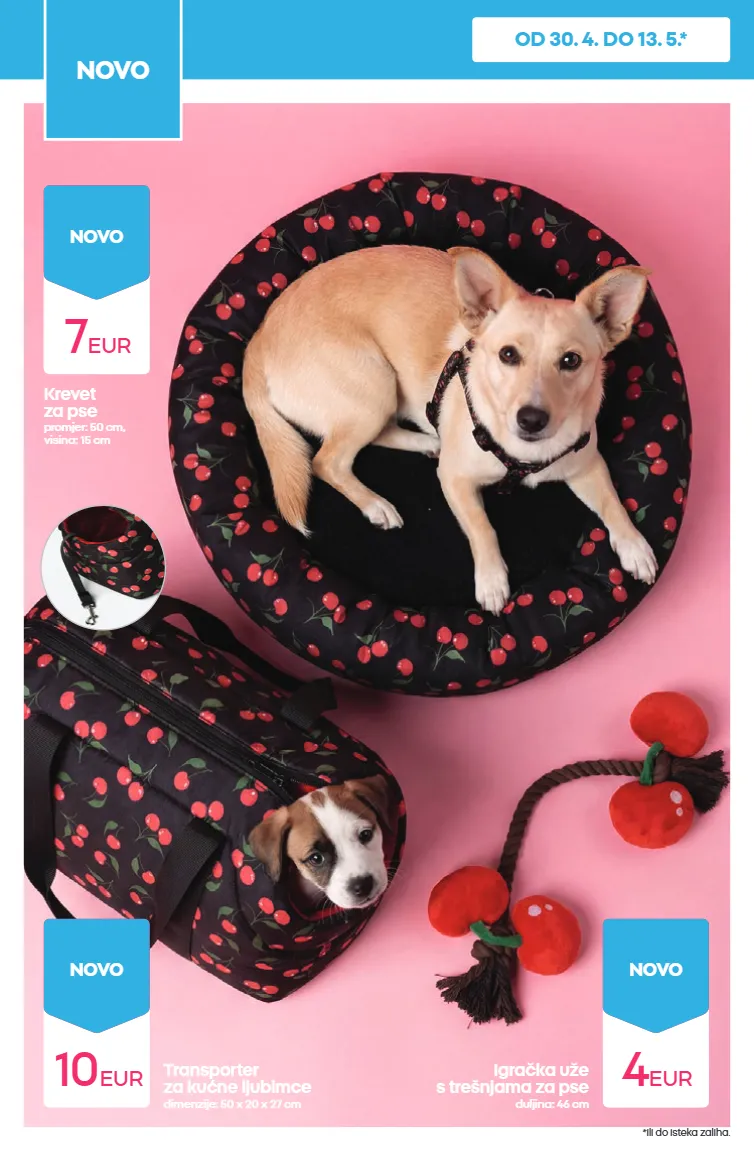 igračka uže s trešnjama za pse duljina: 46 cm transporter za kućne ljubimce dimenzije: 50 x 20 x 27 cm krevet za pse promjer: 50 cm, visina: 15 cm 4 eur novo 10 eur novo 7 eur novo novo *ili do isteka zaliha. od 30. 4. do 13. 5.*
