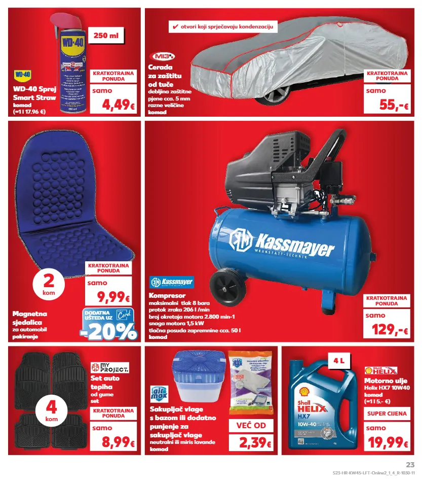 kratkotrajna ponuda samo ✓ otvori koji sprječavaju kondenzaciju 4 kom magnetna sjedalica za automobil pakiranje cerada za zaštitu od tuče debljina zaštitne pjene cca. 5 mm razne veličine komad kratkotrajna ponuda samo 55,- € kratkotrajna ponuda samo 8,99 € kompresor maksimalni tlak 8 bara protok zraka 206 l /min broj okretaja motora 2.800 min-1 snaga motora 1,5 kw tlačna posuda zapremnine cca. 50 l komad kratkotrajna ponuda samo 129,- € wd-40 sprej smart straw komad (=1 l 17.96 €) kratkotrajna ponuda samo 4,49 € motorno ulje helix hx7 10w40 komad (=1 l 5.- €) super cijena 19,99 € samo kratkotrajna ponuda samo 9,99 € dodatna ušteda uz - - 20 % 20 % sakupljač vlage s bazom ili dodatno punjenje za sakupljač vlage neutralni ili miris lavande komad već od 2,39 € 2 kom set auto tepiha od gume set 4 l 250 ml s23-hr-kw45-lft-online2_1_4_r-1030-11 23