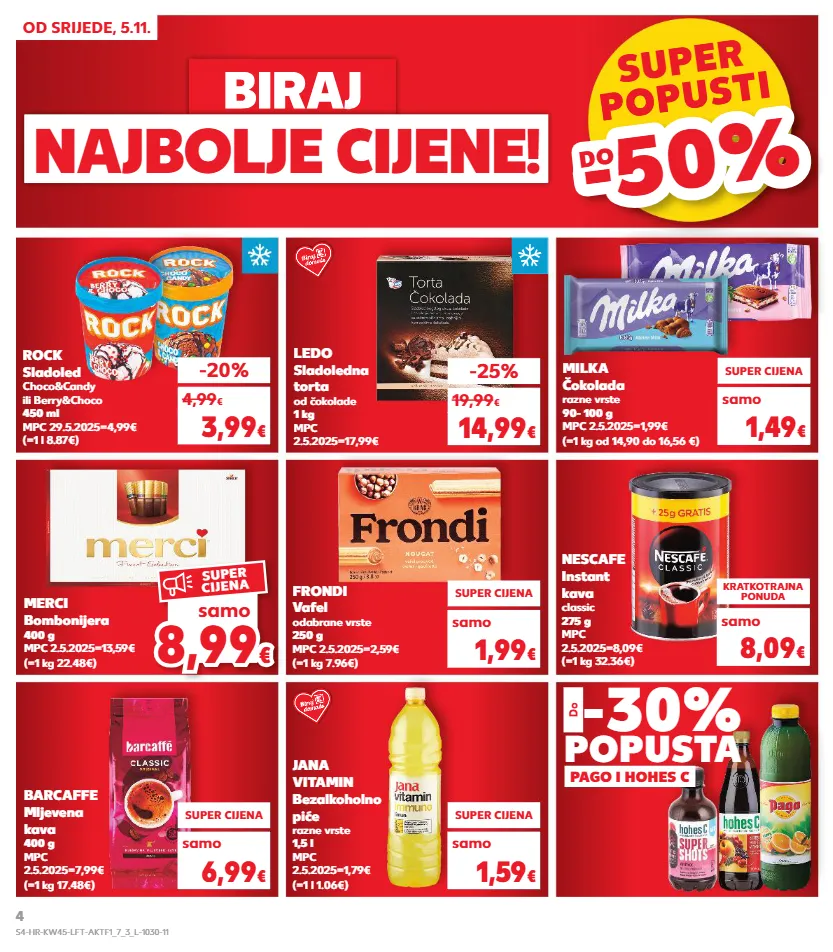 kratkotrajna ponuda kratkotrajna ponuda kratkotrajna ponuda kratkotrajna ponuda kratkotrajna ponuda samo kratkotrajna ponuda samo od srijede, 5.11. biraj biraj najbolje cijene! super popusti popusti -50% -50% do milka čokolada razne vrste 90- 100 g mpc 2.5.2025=1,99€ (=1 kg od 14,90 do 16,56 €) super cijena samo 1,49 € merci bombonijera 400 g mpc 2.5.2025=13,59€ (=1 kg 22.48€) frondi vafel odabrane vrste 250 g mpc 2.5.2025=2,59€ (=1 kg 7.96€) samo super cijena 1,99 € barcaffe mljevena kava 400 g mpc 2.5.2025=7,99€ (=1 kg 17.48€) samo super cijena 6,99 € jana vitamin bezalkoholno piće razne vrste 1,5 l mpc 2.5.2025=1,79€ (=1 l 1.06€) samo super cijena 1,59 € kratkotrajna ponuda samo 8,09 € (=1 kg 32.36€) nescafe instant kava classic 275 g mpc 2.5.2025=8,09€ -25% 14,99 € 19,99 € ledo sladoledna torta od čokolade 1 kg mpc 2.5.2025=17,99€ -30% popusta pago i hohes c do -20% 3,99 € 4,99 € (=1 l 8.87€) rock sladoled choco&candy ili berry&choco 450 ml mpc 29.5.2025=4,99€ 8,99 8,99 € € samo super cijena s4-hr-kw45-lft-aktf1_7_3_l-1030-11 4