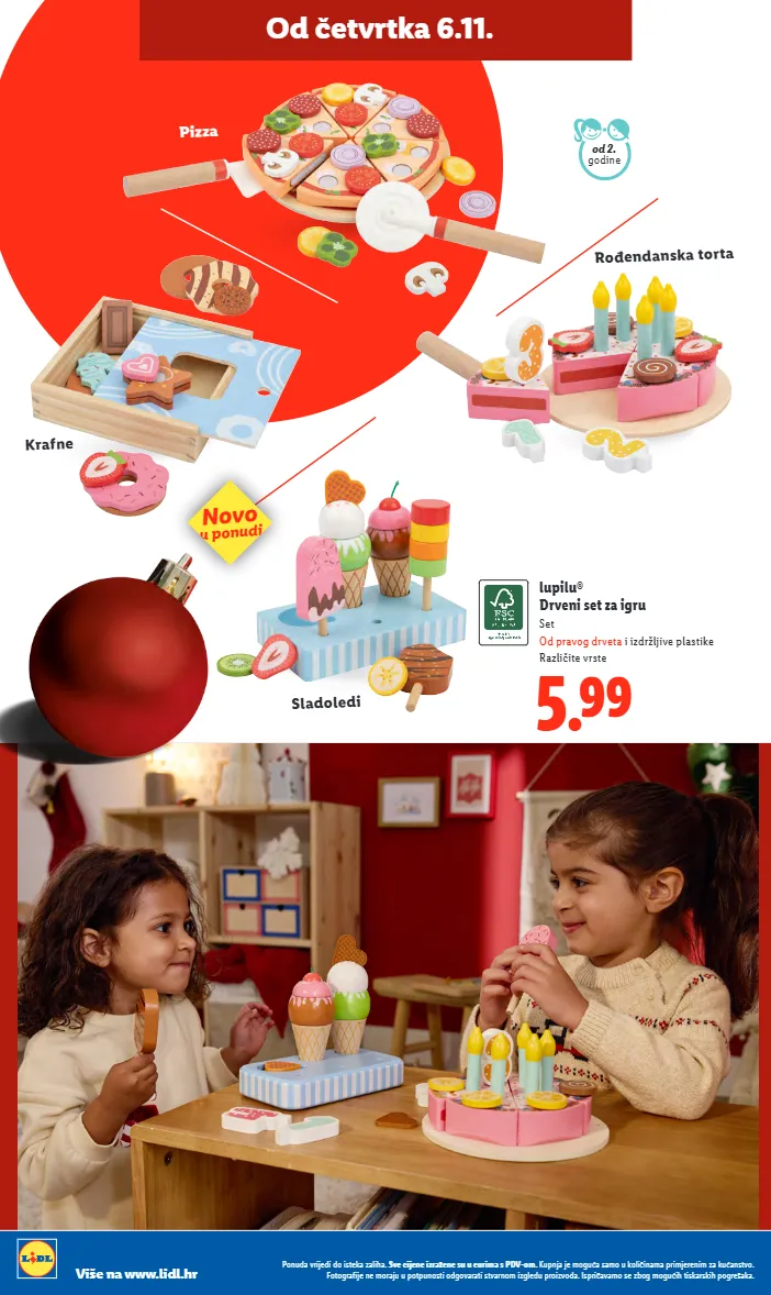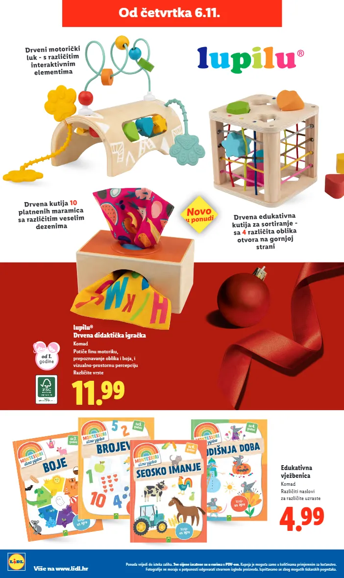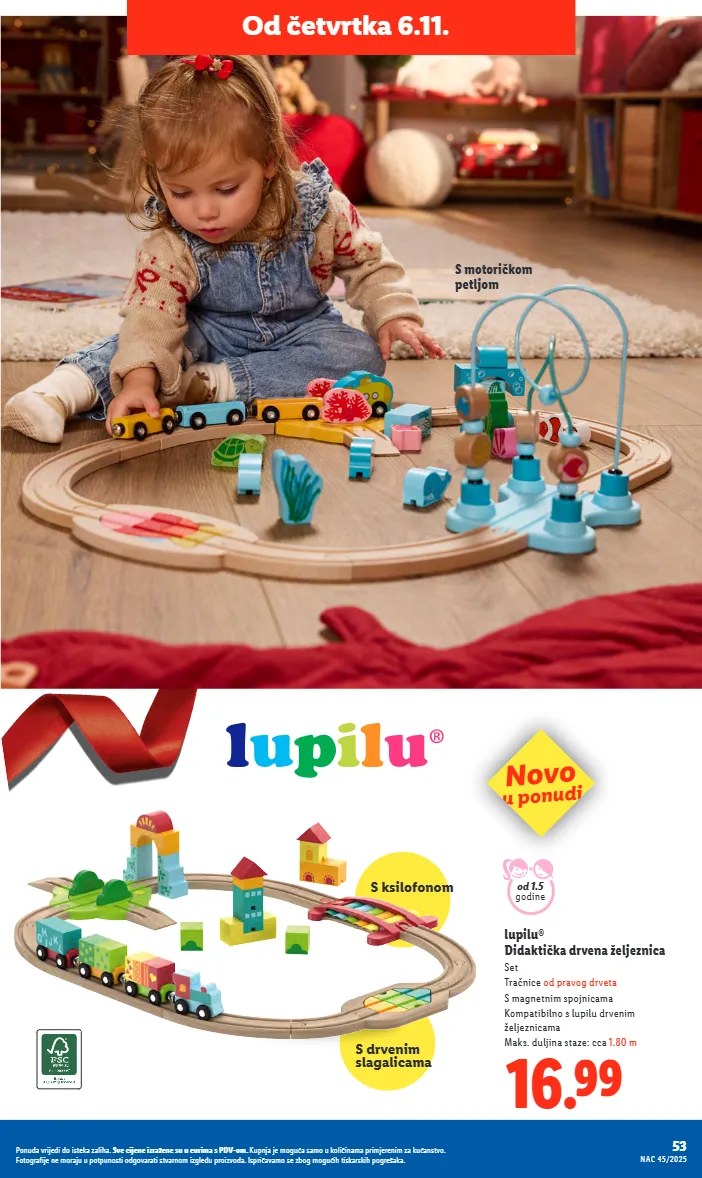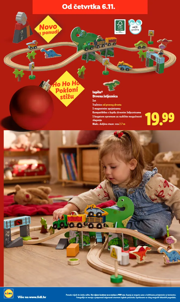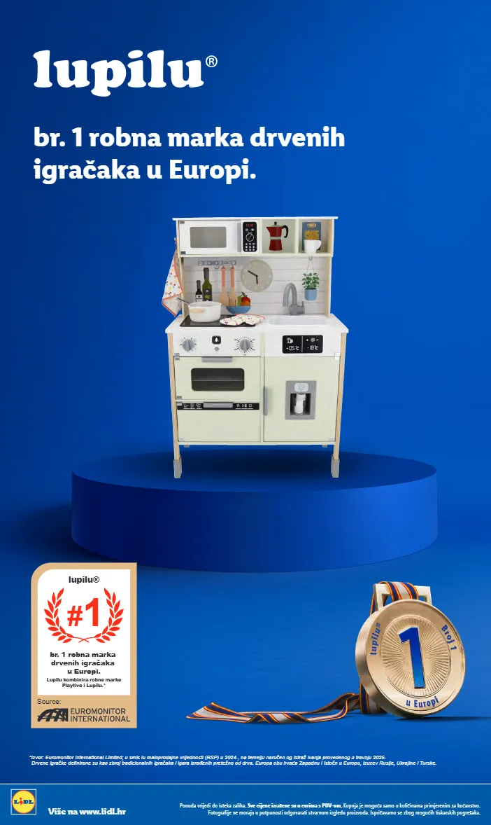 br. 1 robna marka drvenih igračaka u Europi. *Izvor: Euromonitor International Limited; u smis lu maloprodajne vrijednosti (RSP) u 2024., na temelju naručen og istraž ivanja provedenog u travnju 2025. Drvene igračke definirane su kao zbroj tradicionalnih igračaka i igara izrađenih pretežno od drva. Europa obu hvaća Zapadnu i Istočn u Europu, izuzev Rusije, Ukrajine i Turske. Source: # 1 br. 1 robna marka drvenih igračaka u Europi. Lupilu kombinira robne marke Playtive i Lupilu.* lupilu® Ponuda vrijedi do isteka zaliha. Sve cijene izražene su u eurima s PDV-om. Kupnja je moguća samo u količinama primjerenim za kućanstvo. Fotografije ne moraju u potpunosti odgovarati stvarnom izgledu proizvoda. Ispričavamo se zbog mogućih tiskarskih pogrešaka. Više na www.lidl.hr