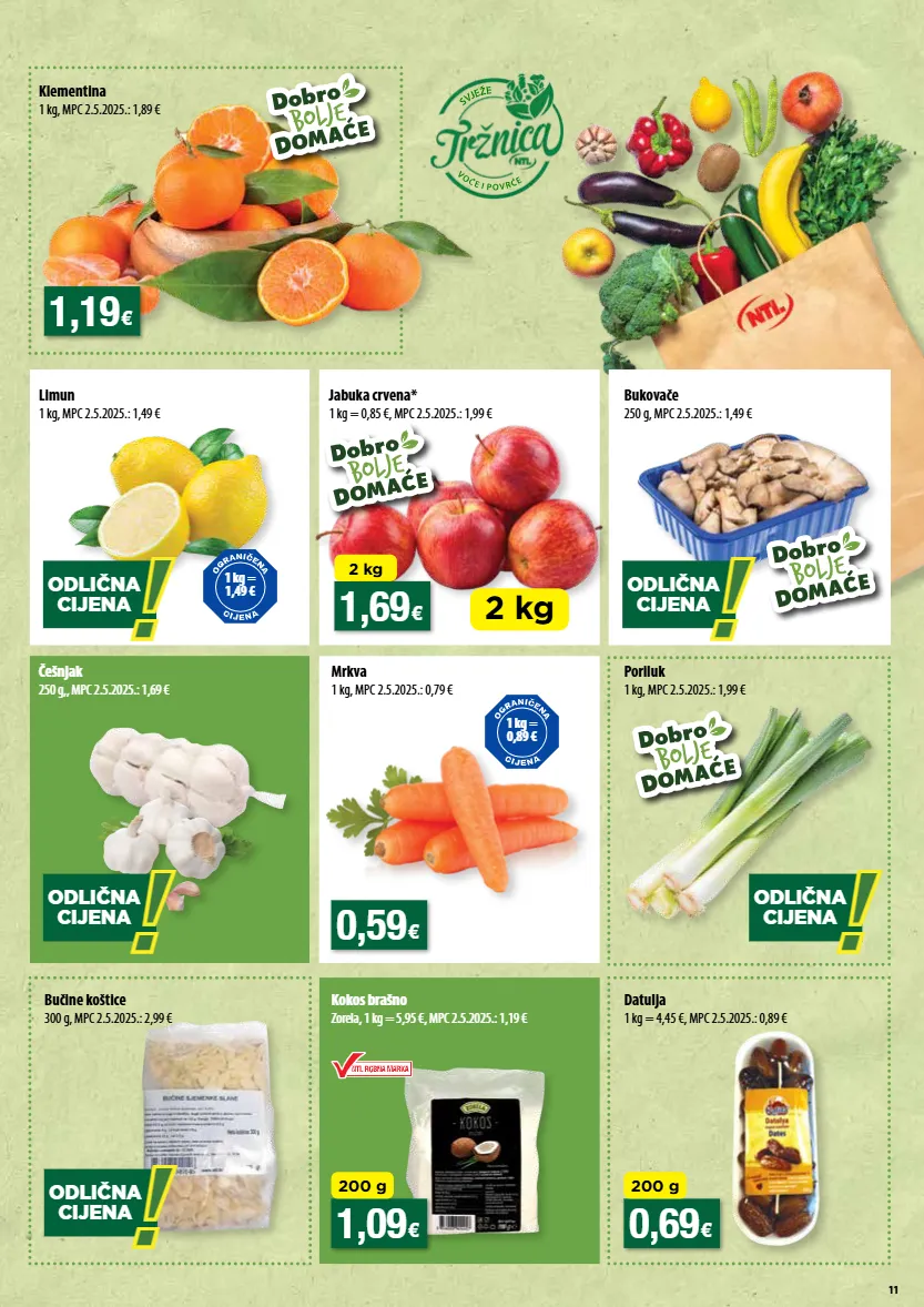 11 češnjak 250 g,, mpc 2.5.2025.: 1,69 € kokos brašno zorela, 1 kg = 5,95 €, mpc 2.5.2025.: 1,19 € bučine koštice 300 g, mpc 2.5.2025.: 2,99 € datulja 1 kg = 4,45 €, mpc 2.5.2025.: 0,89 € klementina 1 kg, mpc 2.5.2025.: 1,89 € limun 1 kg, mpc 2.5.2025.: 1,49 € jabuka crvena* 1 kg = 0,85 €, mpc 2.5.2025.: 1,99 € bukovače 250 g, mpc 2.5.2025.: 1,49 € mrkva 1 kg, mpc 2.5.2025.: 0,79 € poriluk 1 kg, mpc 2.5.2025.: 1,99 € 1,19 € 0,59 € 1,69 € 2 kg 1,09 € 200 g 0,69 € 200 g odlična cijena ! odlična cijena ! odlična cijena ! odlična cijena ! odlična cijena ! 2 kg 1 kg = 1,49 € 1 kg = 0,89 €