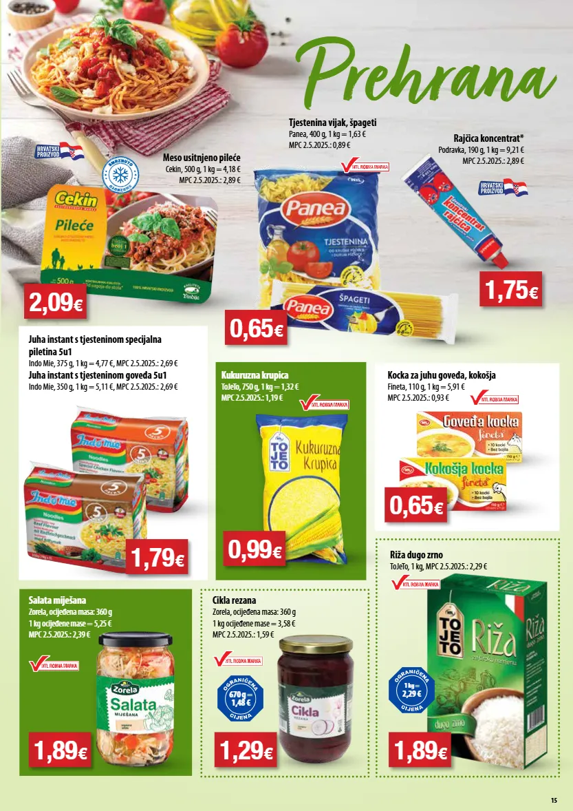 15 s m r z n u t o s m r z n u t o prehrana 0,99 € 0,65 € 0,65 € 1,79 € 1,89 € kukuruzna krupica tojeto, 750 g, 1 kg = 1,32 € mpc 2.5.2025.: 1,19 € tjestenina vijak, špageti panea, 400 g, 1 kg = 1,63 € mpc 2.5.2025.: 0,89 € kocka za juhu goveđa, kokošja fineta, 110 g, 1 kg = 5,91 € mpc 2.5.2025.: 0,93 € juha instant s tjesteninom specijalna piletina 5u1 indo mie, 375 g, 1 kg = 4,77 €, mpc 2.5.2025.: 2,69 € juha instant s tjesteninom goveđa 5u1 indo mie, 350 g, 1 kg = 5,11 €, mpc 2.5.2025.: 2,69 € riža dugo zrno tojeto, 1 kg, mpc 2.5.2025.: 2,29 € 1 kg = 2,29 € 2,09 € meso usitnjeno pileće cekin, 500 g, 1 kg = 4,18 € mpc 2.5.2025.: 2,89 € 1,75 € rajčica koncentrat* podravka, 190 g, 1 kg = 9,21 € mpc 2.5.2025.: 2,89 € 1,89 € 1,29 € salata miješana zorela, ocijeđena masa: 360 g 1 kg ocijeđene mase = 5,25 € mpc 2.5.2025.: 2,39 € cikla rezana zorela, ocijeđena masa: 360 g 1 kg ocijeđene mase = 3,58 € mpc 2.5.2025.: 1,59 € 670 g = 1,48 €